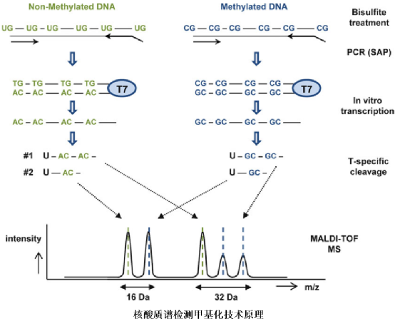 分子诊断技术是指以DNA和RNA为诊断材料,用分子生物学技术通过检测基因的存在、缺陷或表达异常,从而对人体状态和疾病作出诊断的技术。其基本原理是检测DNA或RNA的结构是否变化、量的多少及表达功能是否异常,以确定受检者有无基因水平的异常变化,对疾病的预防、预测、诊断、治疗和预后具有重要意义。 按技术原理,可以将上市分子诊断技术大致划分为PCR技术、分子杂交、基因测序、核酸质谱、生物芯片5大类。 核酸质谱,顾名思义是一种能检测核酸的质谱,它是基于MALDI-TOF MS质谱发展起来的一种相较于传统的荧光定量PCR,一代测序和二代测序,它有什么优势呢? 单核苷酸多态性 人类的好多遗传性疾病是在SNP上的,单核苷酸多态性就是单个的核苷酸序列发生了变异,引起了DNA序列发生了多样性,比例高达1%。它也是疾病易感基因和药物反应差异性的决定因素。所以通过分析SNP的变异位点,提供疾病预测,诊断和提供用药指导等。 目前荧光定量PCR适宜于检测单基因几个位点(2-8个),但是随着医学技术的深入发展,涉及到多基因多位点的疾病越来越多,这时传统荧光定量PCR的不足就会表现出来,工作量大,检测速度慢。而核酸质谱高灵敏度、分离速度快、杂质干扰少等优势,可以一网打尽(如耳聋基因,4个基因20个位点,核酸质谱可以在一个检测孔中解决)。 应用:药物基因组检测、肿瘤易感基因 基因突变 基因突变检测与SNP检测原理相同,区别在于基因突变检测存在的是突变型(发生突变后的样子)和野生型(原来的样子),这一点与SNP的纯合型(比如显性纯合)和杂合型(杂合子)有所区别。图谱峰的面积与样品中分子量所代表的核酸片段含量成正比,故可以通过突变型/野生型的比值确定突变点的比例,可检测到0.5%以上的突变比例,与金标准验证技术符合度>95%。 应用:肿瘤突变(EGFR突变),耳聋基因筛查,地中海型贫血、代谢综合 征、冠状动脉疾病等 DNA甲基化 人类基因组中含有3-5%的胞嘧啶,会在DNA甲基化转移酶的作用下与甲基基团CpG二苷酸的C’5位上,形成一个CpG岛(300-3000bp),这个CpG岛的甲基化水平异常提高,会抑制抑癌基因转录失活或者一些原癌基因被激活。另外DNA甲基化还与记忆缺陷,精神分裂症、抑郁狂躁等复杂疾病有关。 相比较其他方法,核酸质谱的优势就在于可检测低至5%的甲基化水平,特异性好,灵敏度高。 应用:宫颈癌、胃癌、乳腺癌、结直肠癌、肝癌、食道癌、垂体腺瘤等 基因拷贝数鉴定 人类的基因组会出现一段序列缺失或者增加导至序列发生变化而引起产物变化。这种表型上的差异就是拷贝数变异(CNV),CNV涉及的DNA片段大小通常介于1kbp-3Mbp之间,在基因组中分布广泛,其与临床上罕见病、单基因病相关,也与很多肿瘤等复杂病相关。因此对CNV的变异研究,能够对多种疾病并发机制形成新的认知,以更好地指导疾病的分子诊断和新治疗方法的开发。 核酸质谱可以通过SNP的多态性等位基因比例(SAR)检测技术对待检测标本中目标基因的拷贝数进行定量分析。 高通量检测结果验证 美国FDA批准核酸质谱技术作为二代测序的验证平台,以弥补一代测序仪灵敏度不足的短板。高通量测序的检测灵敏度可达1-5%,因此需要相匹配的验证平台,但是一代测序灵敏度低于15%,无法提供有效的验证,因此,核酸质谱作为两者结果差异时的验证平台。 场景一:结直肠癌KRAS基因低频突变 解密遗传变异与肿瘤发生发展关系的研究,质谱肿瘤基因突变检测分析具有成本低、高通量、高灵敏度和特异性等显著优势。 场景二:多呼吸道病毒、多亚型同时检测 巧妙的整合PCR技术的高灵敏度以及质谱技术的高精确度,开创了检测精确度高、重复性强、具有高度自动化、标准化特征的全新检测时代。可以对微生物、病毒以及其他单倍体生物方便快捷的进行分子分型、物种鉴定、变异物种发现及归类等全面分析。 场景三:高血压用药指导 检测到1%-3%突变等位基因,在个体化用药、耐药及新药筛选等临床项目中,可以尽早检出突变,帮助临床医生改善治疗方案。 目前核酸分析所使用的质谱电离技术主要还是采用 ESI 和MALDI。简单来讲,两种电离技术都是软电离,ESI 检测的特点是生物大分子带多个电荷,质荷比范围基本在2000 Da 以下区间,从而能检测几万乃至更大的生物分子;而MALDI 常得到单电荷峰,与飞行时间(TOF)分析器搭配,检测范围可以到几十万道尔顿。 由于生物样品的复杂性,质谱技术还面临着一些挑战和困难。但生物质谱技术是科学研究的有力工具,随着临床实验室对质谱的了解和应用不断的加深,未来该检测平台或可成为规范实验室不可或缺的标准装备。分子诊断技术的应用不仅深化对疾病发病机制分子生物学的基础研究,而且不断扩大了分子诊断疾病的病种,随着人类基因组计划的完成和蛋白质组计划的启动,分子诊断方法将极大地推动现代检验医学的迅速发展,并通过这些基本技术的衍生、联合产生新的分析方法,从而提高分子诊断的特异性、敏感性和准确性,为临床医学诊断和治疗提供更准确的数据和信息。 参考文献 1、中国核酸质谱应用专家共识协作组.中国核酸质谱应用专家共识[J].中华医学杂志,2018,98(12):895-900. 2、许蕴,李赟,张晓丽,徐迹,刘文兰.飞行时间质谱核酸检测技术在临床检测中的应用[J].中华检验医学杂志,2019,42(8):694-699. 免责声明:文章内容仅供参考,不构成投资建
