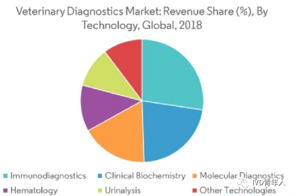 市场根据产品、技术、动物类型、最终用户和地区进行细分。基于该技术,免疫诊断部分有望在2018年占据最大的市场份额。这主要归功于免疫诊断测试的高准确性、兽医从业人员对这些测试的高度偏好以及它在兽医诊断中的广泛应用。