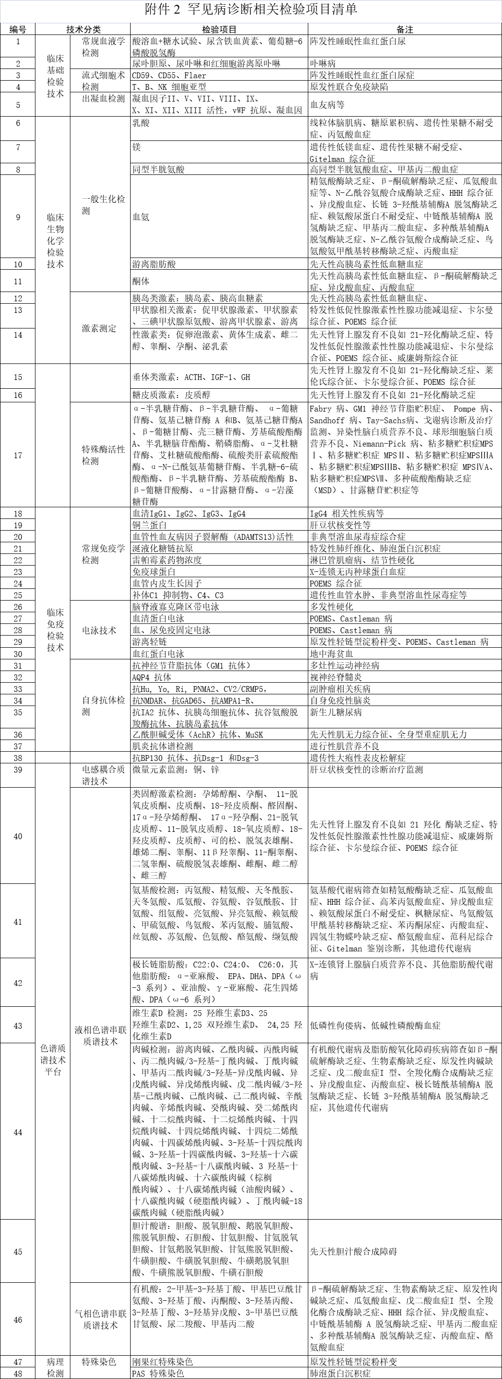 罕见病涵盖121大项和412个病种。在相关检验项目中,除临床基础检验外,生化涵盖乳酸、镁离子、同型半胱氨酸、血氨、游离脂肪酸和酮体检测。