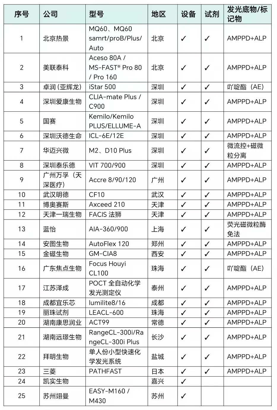 在国家药监局数据库,医疗器械板块只能看到化学发光的注册数据,并不能区分单人份化学发光与化学发光,因此参考展会资料进行整理,共汇总到主要单人份化学发光厂家25家,资料有限难免有错漏,可在留言区补充,还望相关厂家朋友,多多包涵!