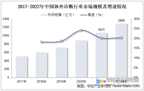 国内IVD行业发展迅速,据中国医疗器械蓝皮书统计,2021年中国体外诊断市场规模达到1071亿元,预计2022年市场规模达到1290亿元。