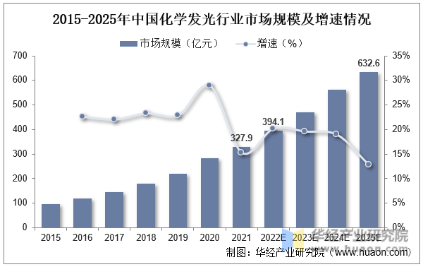据统计,2022年中国化学发光行业市场规模达到394.1亿元,预计2025年达到632.6亿元,CAGR为17.4%。