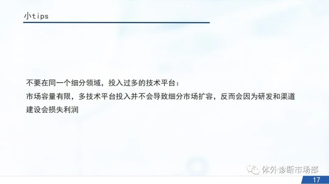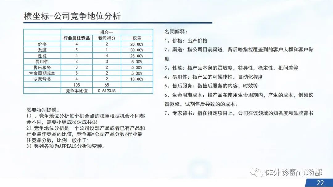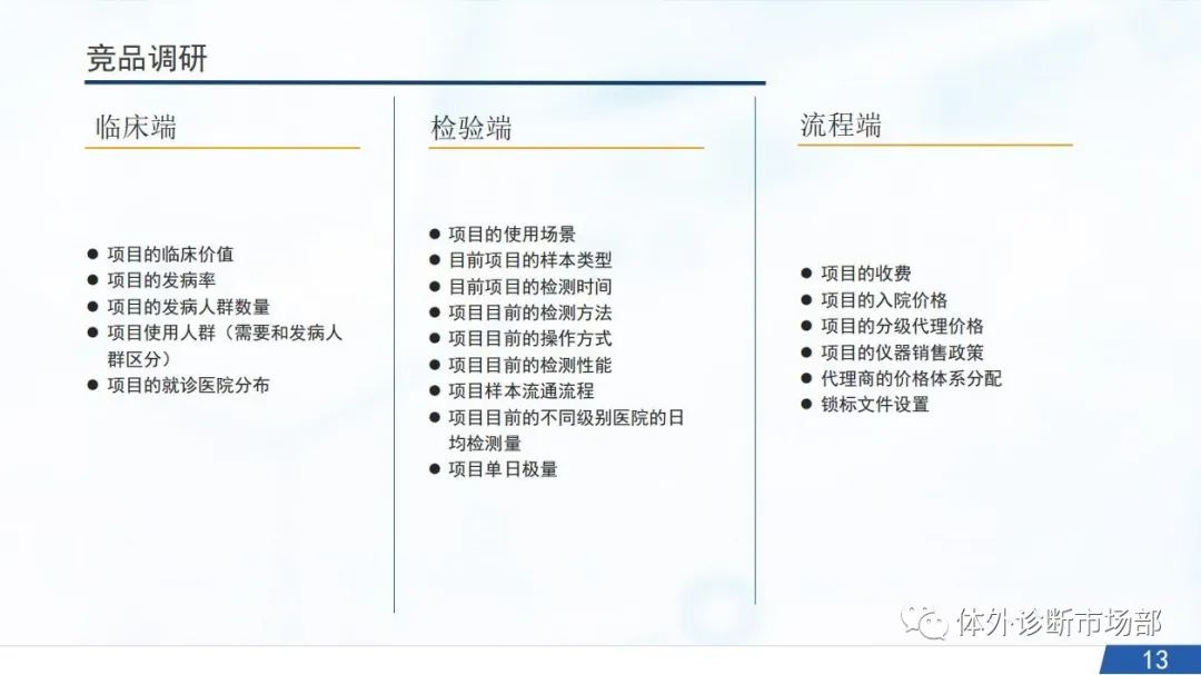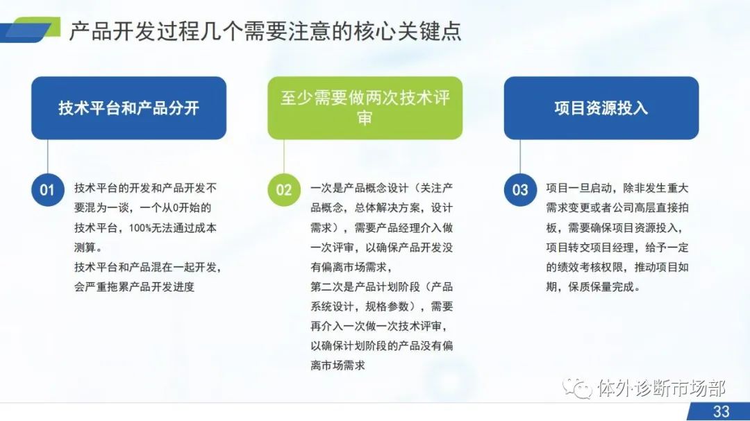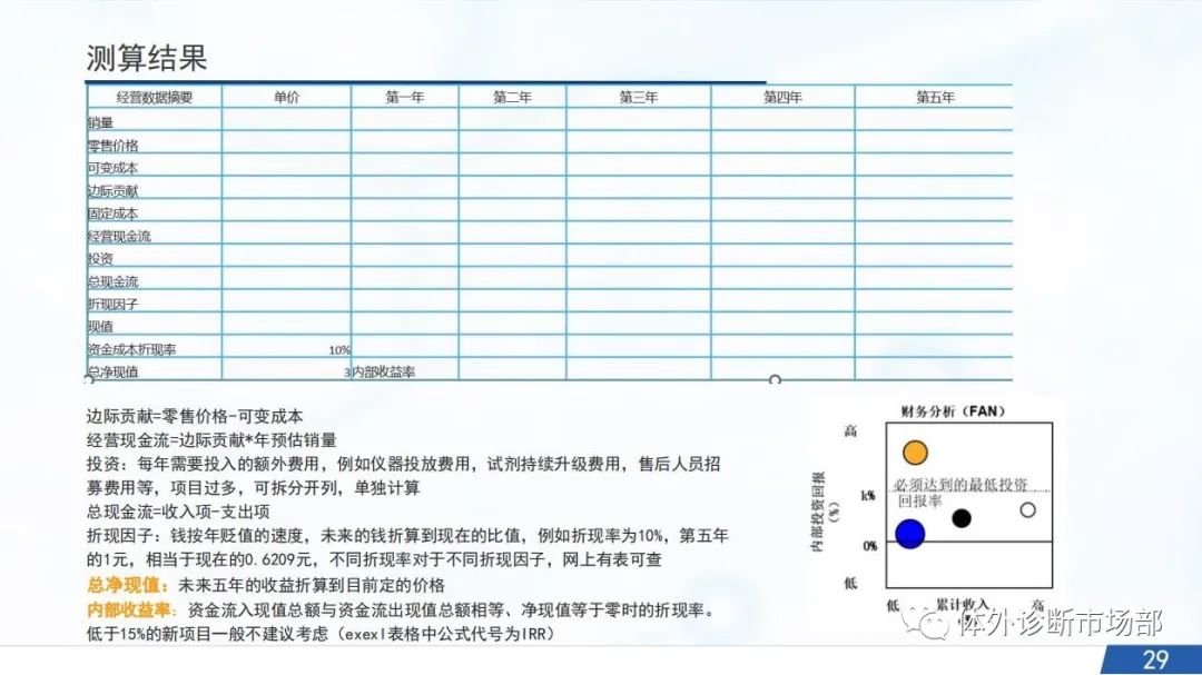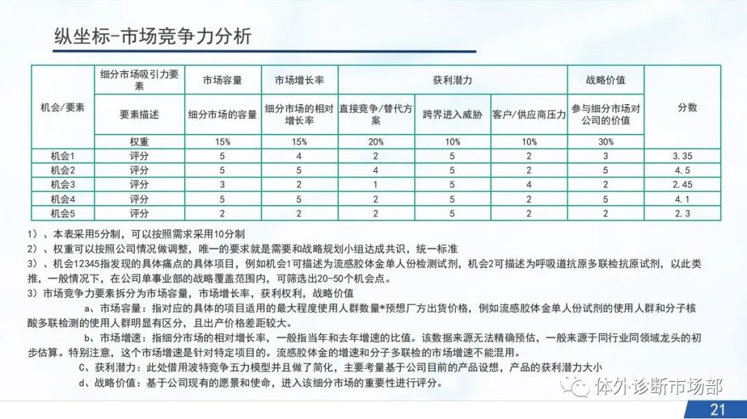 来源:体外诊断市场部,作者:张清华 资深行业产品经理,张清华对擅长的需求定义和产品细分领域进行了分享,深入浅出介绍了需求探索和机会筛选的原则方法。 需求探索:需要细分临床需求和检验需求,并且在产品的价值链中找到机会点,由于IVD领域多数产品的收费是确定的,倒逼产品设计符合成本的需求。再到竞品调研和痛点梳理。给出了非常务实的经验之谈,在容量有限的市场,开发过多平台,会相互竞争。 机会点筛选:介绍了两个经典的工具,SPAN战略地位细分和FAN财务分析,能够通过客观数据比较机会点之间的吸引力,能够有理有据得出单点项目的立项建议和对产品线组合进行管理。 |