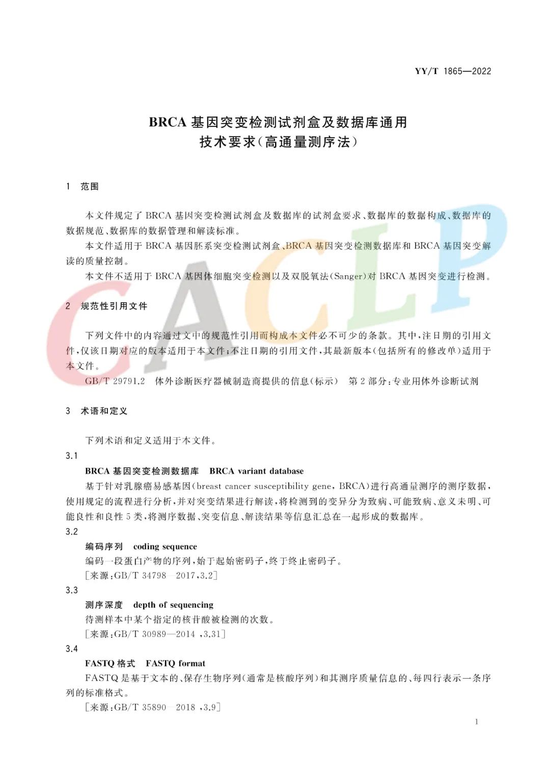 来源:CACLP体外诊断咨询 2022年10月17日,国家药监局发布了《BRCA基因突变检测试剂盒及数据库通用技术要求(高通量测序法)》行业标准YY/T 1865—2022,该标准于2023年10月1日正式实施! 本标准由国家药品监督管理总局提出,由全国医用临床检验实验室和体外诊断系统标准化技术委员会(SAC/TC 136)归口。 本文件起草单位:中国食品药品检定研究院、深圳华大智造科技股份有限公司、广州市达瑞生物技术股份有限公司、北京市医疗器械检验研究院、北京吉因加科技有限公司、深圳华大基因股份有限公司、上海思路迪生物医学科技有限公司、厦门艾德生物医药科技股份有限公司、北京泛生子基因科技有限公司、广州燃石医学检验所有限公司、福建和瑞基因科技有限公司。本文件主要起草人:曲守方、杨梦、杨学习、李达、易玉婷、王文靖、马静、李旭超、黄伟伟、汪浩、白健、邵康、李士森、吴英松、于婷、张文新、黄杰。 《BRCA基因突变检测试剂盒及数据库通用技术要求(高通量测序法)》行业标准 |
