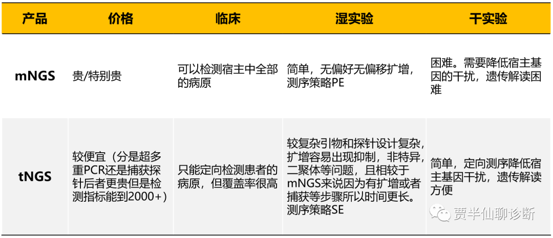 5 再说市场问题,tNGS主要的检测方式是外送和少量的院内检测,这就意味着一些测序仪器产商可以自行推动tNGS panel的研究和推广,例如MGI Illumina,Geneplus。 这些厂商都已经推出了自己的整套流程,ICL和医院可以根据自己的要求去订购或者直接购买现成的整套流程。除此之外的一些大的ICL也有自己的合作对象或者自己主导研发例如JY,DAN,SS等。 所以我分析例如目前纯做tNGS或者mNGS的产商都会被以上的这些巨头压缩市场空间,当然这里也挤占了一部分多联检的市场空间,tNGS小panel的价格已经和多联检产品的价格区间趋同了,在加上优秀的临床意义和高覆盖率。目前多联检能守住的市场就是院内以及快速,简单,有收费这三个优点了。 接下来就是实验这块了,但我聊的并不是跑什么测序策略,每个样本需要的数据量,而是样本量的问题,最近和一些圈内的朋友聊了一下,tNGS的确很火,于是有很多ICL买的整套方案跟风去做,但是没有考虑到样本量以及开机成本的问题,结果就是一周样本量根本无法支撑开机检测。 如果都是这类情况tNGS时效性甚至不如培养。我肯定不怀疑大型三甲医院和大型ICL的样本量足够开机。但情况并不一致,如果是接收多家医院样本的ICL都凑不够样本开机,那么一些非三甲医院呢? 所以这个时候检测数量更加灵活,能做到一人一检,多联检产品显然是更适合这些ICL和医院的。样本量大时候用tNGS,样本量小中可以用多联检。 最后,很多朋友问的,就tNGS,mNGS的区分我用一个表格尽可能展示出来。 我们今天就聊这么多,我是一直在努力的大浩。 |