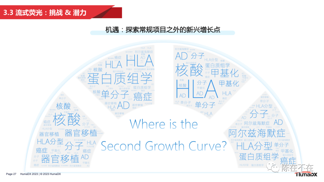 目前,越来越多的企业掌握了多重编码微球技术,第一类是流式荧光企业,他们不仅能够提供流式荧光设备和试剂,同时也具备微球自主研发能力;另一类则是IVD上游企业,也在逐步推出流式荧光使用的磁性微球。相信未来几年,随着本土企业的研发和应用水平水涨船高,必定会有更多的微球企业涌现出来,提供更多的原料选择。 此外,行业的良性发展必然离不开行业标准的约束。目前由 SAC/TC136 牵头起草的《流式点阵仪》行业标准已进入征求意见阶段。即将出台的行业标准将进一步促进行业健康有序发展,也可以为企业提供更加明确的参照和依据。 快速变化的行业局势和市场环境无疑蕴含着巨大机遇,但也对企业能力,特别是管线布局能力提出了更高要求。流式荧光在常规项目之外的新兴增长点在何方?流式荧光企业如何开辟第二增长曲线?...... 这些问题都需要我们脚踏实地、仰望星空般的思考、探索和实践。