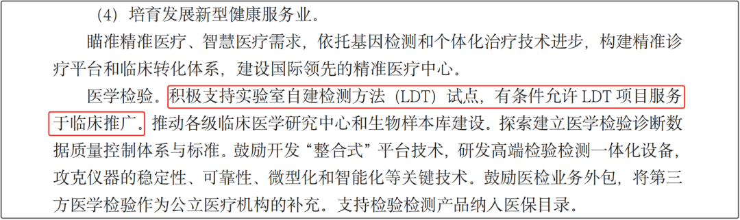 第2次: 2022年4月20日,广州市发改委印发《广州市加快推进医学检验产业集群发展实施方案》,有明确“支持第三方医学检验机构开展LDT项目”的提法: