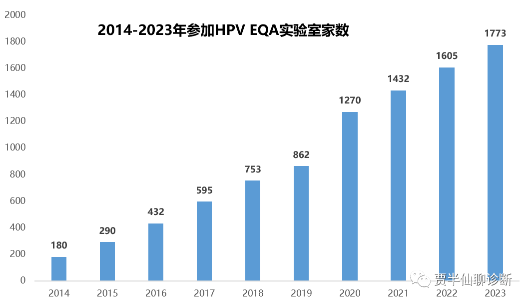 必须说明的是EQA数据仅仅是一个方面,仅检测DNA,如豪洛捷公司就没参与;再有价格因素没考虑,每家实验室使用数量也未考量;但依然可以管中窥豹的。 根据2022 IPSOS Market tracker数据HPV销售数据以出厂价计约为30亿元。 从EQA数据可以看出从2014-2023年参加实验室的数量从180家大幅增加到1773家,10年复合增长率达到惊人的25%。 还是以头部公司凯普生物为例,看看这个市场增速有多高:2019年6月累计检测量是2700万人份,到2022年累计检测量是5000万人份,也就意味着3.5年共检测了2300万人份。而凯普生物的2023H1公司HPV检测产品累计使用量近500万人次,比去年同期增长27.99%,比2019年同期增长60.28%,呈现出较快的增长。 再看个后来者,华大基因在2017年获证,截止2023年6月份已经累计检测HPV>700万人份,2023年就有可能做到150万人份。 并且后续还会有更大的市场增量:根据筛查指南30-65岁的女性需进行HPV检测数量约为3.6亿人,平均每年的检测比例在30%,同时今年1月20日,国家卫健委发文《关于印发加速消除宫颈癌行动计划(2023-2030)的通知》提出:按照目前宫颈癌筛查策略,保守估计以第一阶梯宫颈细胞学检查和HPV检查为主的筛查市场将扩大1倍以上!- 健康意识:每个人作为健康的第一责任人,健康体检意识逐步增强
