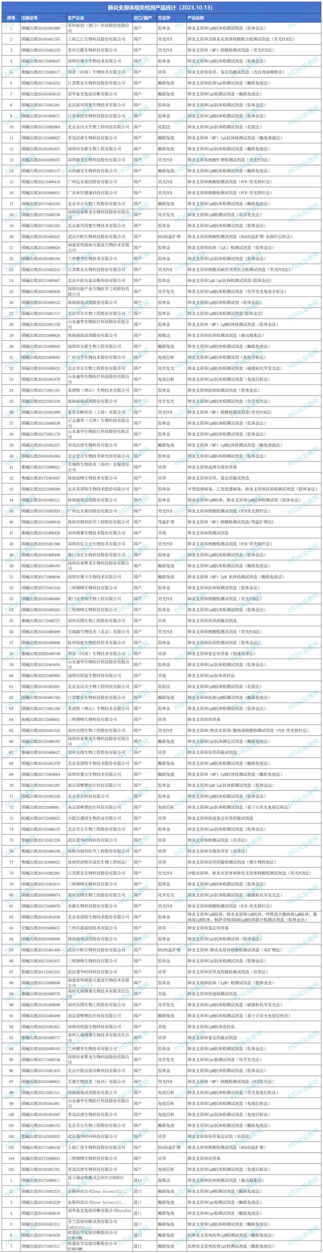 据IVD从业者网统计数据显示,目前肺炎支原体相关的检测试剂盒已达112款,其中国产试剂105款,进口试剂7款。