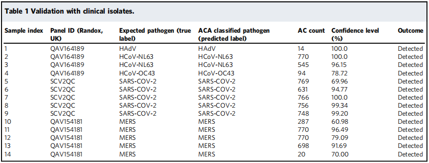 开发的7-plex用于临床多病原体鉴定。作者选择了对合成DNA (PM7.2151) ACA分类准确率最高的多重组合。如下表所示,采用ACA方法对14份阳性样本进行qdPCR分类,所有病原体目前都被高置信度鉴别出(中位数= 95.46%)。结果显示Smart-Plexer可以利用数据驱动的多路复用能力,成为一种易于开发、强大且经济高效的分子诊断解决方案。
