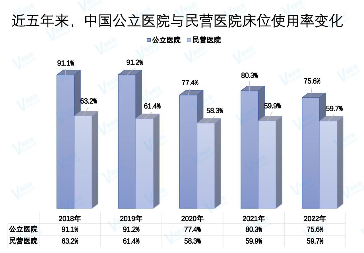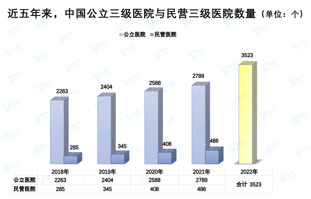 近日,2022年我国卫生健康事业发展统计公报公布,让行业人士得以一窥2022年卫生发展情况。那么,通过近5年统计年鉴数据,还可以看出中国医疗有哪些变化呢? 10月12日,国家卫生健康委员会规划发展与信息化司公布了2022年我国卫生健康事业发展统计公报,也让行业人士得以一窥2022年卫生发展情况,目前公布的数据及项目类别没有每年的统计年鉴精细,但看医界梳理整理了2022年统计公报及历年统计年鉴数据,提炼出近五年的医疗卫生事业一些方面的数据,供行业及产业人士参考。 1.医院数量(单位:个) 民营医院个数继续增长,公立医院个数继续减少 2.床位数量(单位:万张) 2018年,公立医院床位占73.7%,民营医院床位占26.3%。 2022年,公立医院床位占70.0%,民营医院床位占30.0%。 3.诊疗量(单位:亿人次) 民营医院略有提升,但占比依旧低迷 2018年公立医院诊疗人次30.5亿人次(占医院总数的85.2%),民营医院5.3亿人次(占医院总数的14.8%); 2022年,公立医院诊疗人次31.9亿(占医院总诊疗人次的83.4%),民营医院诊疗人次6.3亿(占医院总诊疗人次的16.6%)。 4.三甲医院数量(单位:个) 5.三级医院数量(单位:个) 6.卫生技术人员数量(含执业医师及执业(助理)医师、注册护士、药师、技师等,单位:万) 7.卫生总费用占GDP的比重 8.医院病床使用率 |