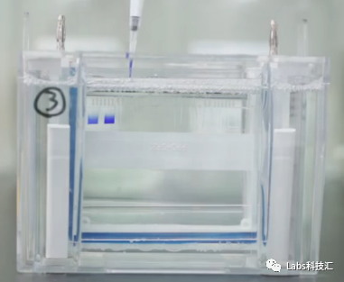 操作:将配置好的分离胶沿着玻璃板一侧缓慢打入玻璃板中,这个时候不用担心打入气泡。灌入合适量的分离胶之后,加入适当剂量的ddWater或者无水乙醇封胶。(加入封胶试剂量没有规定,盖住整个分离胶胶面即可)