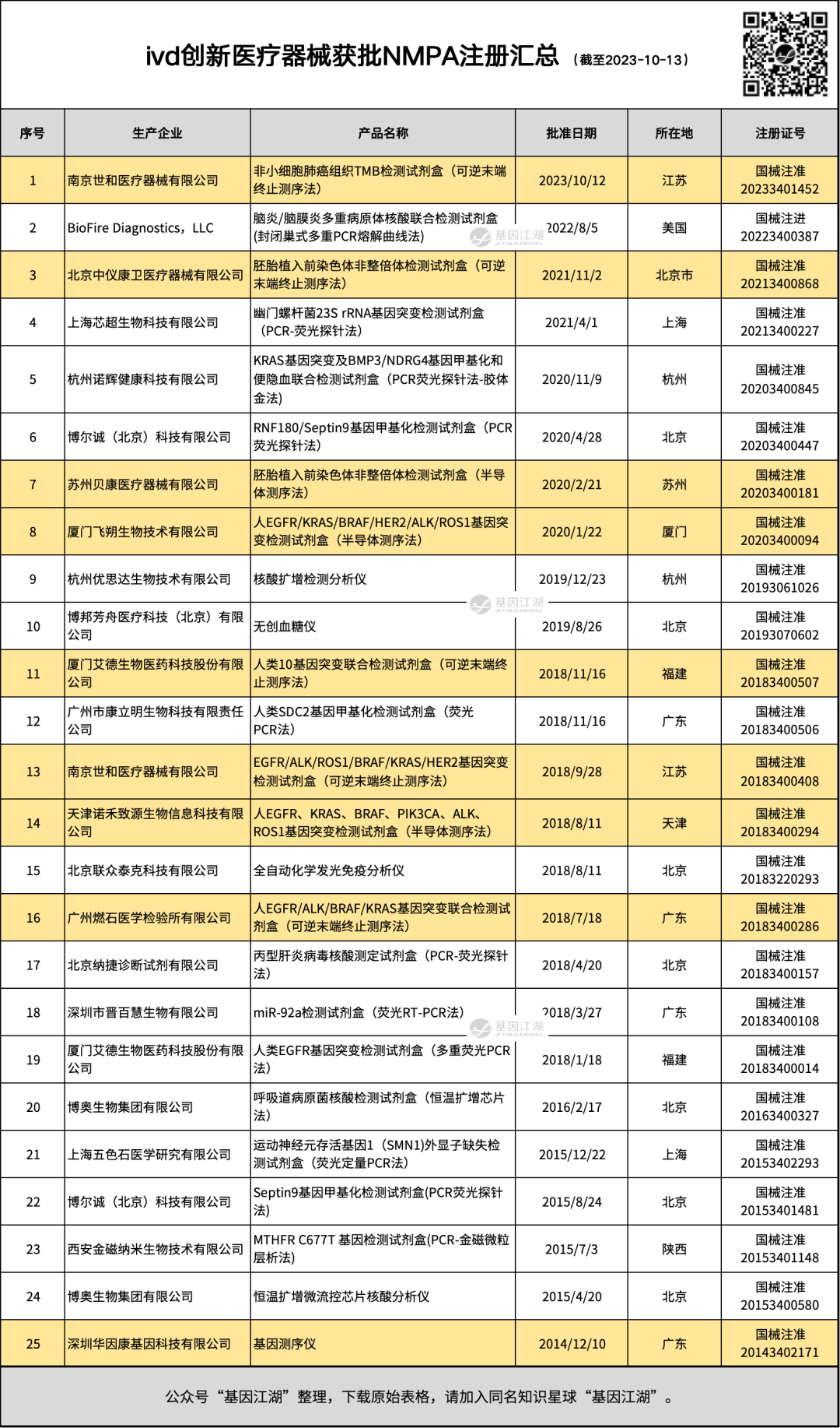 对于一家企业而言,打上“创新”标签的重要性不言而喻。 8家NGS企业获批9款“创新产品”,还有数款正在申报途中,为什么大家仍在泥泞挣扎? 很少有人注意到,国家开展“创新医疗器械审批”颁发的第一证,正是NGS项目: 来自深圳一家老牌测序仪厂商:深圳华因康。 但很多行业新人,对这家企业并不熟悉,没见过其产品,甚至没听过这家企业。 援引自朋友“陈在不在“的说法, “拿证只是产品商业化第一步,其后是收费,医保,是为三重门。” 深以为然。 无论是走的创新通道,还是按部就班的普通路径,获证只是完成了万里长征的一小步;支付问题、真实的临床价值都需要在更具体、更真实的情境下去逐步印证。 甚至,在笔者看来,“获证”可能是多种因素的共同作用,并非完全意义上遵从于严格的“注册审批流程”,这里可能有产业扶持、政策倾斜、创新探索等多种因素。 例,在创新审批刚发起阶段,前两款NGS产品:华因康的基因测序仪、达安基因的NIPT检测试剂,从进入创新到最终获批,耗时不到半年: *绿色颜色标注为特殊标注,并非通过创新路径获批。 尾声 上午写这篇文章时,刚好见到燃石的推文: