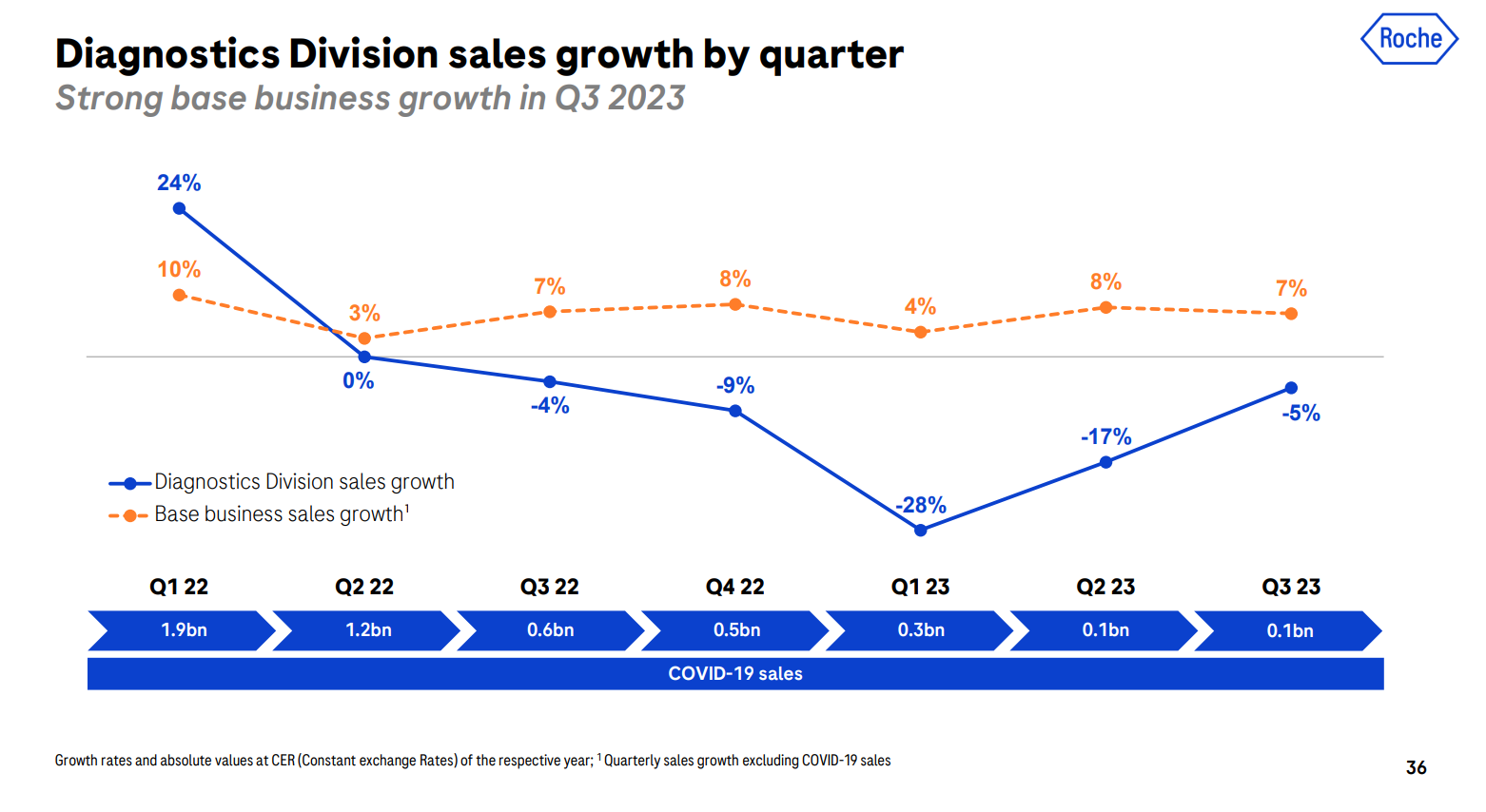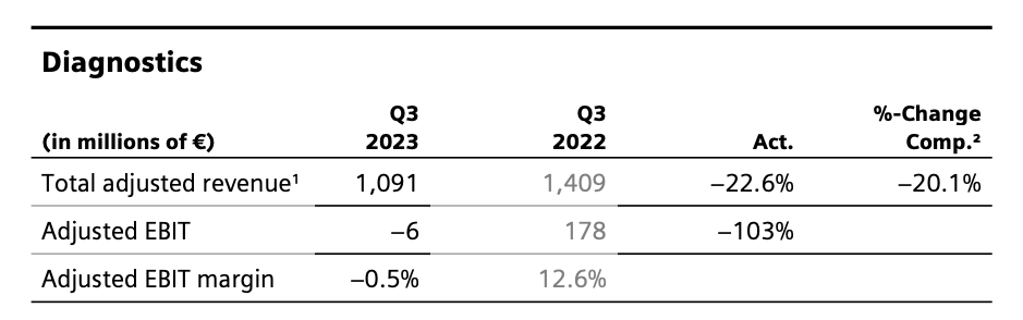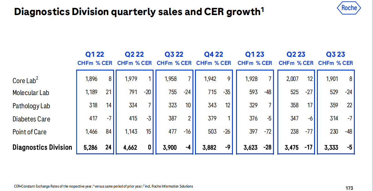 按固定汇率计算,Q3新冠相关的诊断收入同比-5%,与前两个季度的-28%和-17%相比,已基本走出新冠业务下滑的影响。