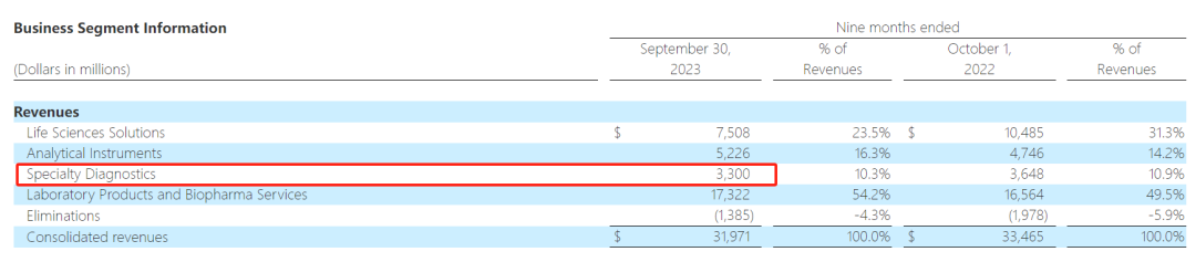 前三季度,丹纳赫诊断业务共收入68.61亿美元,同比-13%。