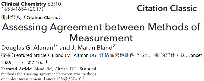 临床实验室方法学比较实验结果究竟用什么统计 2017年10月临床化学杂志上,刊登了Altman和Bland两人合写的一篇文章“评估检测方法间一致性”。这两位统计学家是当今在临床实验室公认的统计学术权威。在临床化学杂志的引用经典(Citation Classic)专栏下,这篇文章中应该是杂志的特约稿。在该文章一开始,就将他们的最具特色文章作为引子:Bland JM,Altman DG. Statistical method for assessing agreement between two methods of clinical measurement. Lancet 1986; i:307-10。 回顾临床实验室的很多实验工作,为了确认或验证使用的检测系统或新方法的可靠性,对报告定量结果的证据就是要拿出新引入的检测系统,是否与实验室原先使用的、或与参考系统间,在检测患者样品的比较中,具有一致性的证据。可惜,在很长的时间以来,许多实验室至今还是在采用相关系数说明实验结果良好!不仅是中国,全世界都在这样做,我真的弄不懂。 Altman和Bland两位对临床实验室做出了巨大的贡献。在方法学比较中,以他们名字命名的Altman & Bland统计做法是目前用的最多的一个。 在这篇文章中,他们介绍了参与临床实验室的经历,也感慨了至今的现状。为了让我们临床检验的人员,必须清楚了解:方法学比较中相关统计只是说明,比较的数据间有关系,r越接近1,说明两组数据间的关系很紧密,仅此而已。R绝不是判断两种方法比对证实结果可靠一致的统计依据!这个观点非常重要! 以下是我翻译原文的内容。 我们开始我们的事业,1970年代作为医学统计学者,工作于流行病学部门。对检测质量在流行病学中有很好的认识,通过形成阐明的“随机零”的血压计,可以对血压进行无偏移的测量。但是,以后我们转向单独的临床研究环境,我们独立地面临许多与测量生物量值有关的情况,开始是风湿病学和心脏病学。我们发现,无论作者比较了使用相同方法得到的、还是使用不同方法得到的检测得到的差异观察,在检测研究分析中的标准方式是相关系数。 很显然,相关没有提供2个检测方法间一致的回答。例如,我们可以在不改变相关系数的情况下,将使用其中一种方法的所有观测值的大小增加一倍。问题不是是否2个方法一致,而是它们一致如何紧密,由于成对检测间的差异或更有含义。由此,我们形成了一些简单的想法,依据差异的均值和SD,我们可以估计一个范围,在此范围内,我们可预期观察到的差异有很高的百分值(通常95%),在此范围内—我们称之为“一致限值”。这些限值取决于假设,差异的均值和SD,与检测大小无关,它们遵循一个大致的正态分布。我们设想,数据图会对检查这些假设有帮助。特别是,我们建议了一个成对检测间差异的直方图(histogram),一个差异与它们均值的分布图。我们看这个图,现在经常称为“Bland-Altman图”,给出了数量上总结的支持,与方法本身无关(1)。 我们首先在1981年的Cambridge的统计学者会议上呈现我们的想法。我们的文章刊登在1983年(2)。这篇文章没有让临床同道理解,我们想在医学杂志上发表我们的想法会有用。因此1986年1月,我们的文章发表的The Lancet。令人惊讶地,它成为所有发表的统计文章中最多印证的文章之一。 我们在Lancet上的文章,包括了数据组,是我们收集做研究的,使用两种不同的仪器对呼气流量峰值进行重复测量——样品包括同事、家人和我们自己(我们是肺功能最好的两个人)。对我们来说,列入原始数据表显然是有益的——然而,尽管目前注重透明度,这种做法仍然很少见。 我们确实不是第一人认识相关系数没有评估一致性,而只是关联性。值得注意的是,我们印证了Westgard和Hunt,他们在1974年的临床化学杂志上明智地写了“相关系数…在统计分析比较数据中没有实际用途”(3)。他们的首选方式使用了依据最小二乘回归的预测区间。这个课题在临床化学中是关键重要的,这也是在1983年在化学杂志中我们文章中的5篇参考之一。 在我们设想我们简单的方式是明显时,我们的思想未必是原先的,但是我们没有能发现一个相似的提议。我们发现Donald Mainland已经在早40年前就做出了关于相关相似的评论(4),但是我们依然没有发现,关于如何比较检测方法的建议。 自从第一篇文章以来,我们已经扩展各个方面的方式,特别是允许对重复检测的分析(5,6)。 方法比较明确地是性能关联的题目。我们1986年的文章是在The Lancet中印证最多的,现在依然是一天被印证多次,但我们其他有关的文章在几个其他杂志中,也是最被引用的(2,5,6)。检测是临床实践和研究的基础。作为医学统计学者超过了40年,我们依然很失望,至今还是太少的人有了认识。 参考文献 转载请注明出处 微信公众号:冯仁丰 |