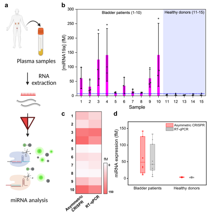 不对称CRISPR检测临床样品中无扩增miRNA的临床应用。