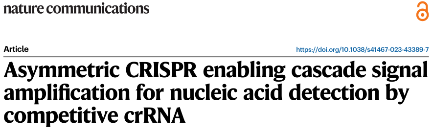 近日,一组来自康涅狄格大学健康中心的研究团队在杂志Nature Communications上发表了一篇题为“Asymmetric CRISPR enabling cascade signal amplification for nucleic acid detection by competitive crRNA”的文章。作者研究了全长crRNA和split crRNA之间的竞争反应诱导Cas12a的不对称反式切割活性,并开发了一种用于核酸检测的级联信号扩增方法,称为不对称CRISPR试验。作者证明,这种竞争性CRISPR反应引起了CRISPR酶的构象重置,可以显著提高CRISPR- cas12a的检测灵敏度,而无需额外的DNA扩增步骤。此外,作者发现Cas12a可以识别片段化的RNA/DNA靶标,从而可以直接检测RNA。基于这些发现,作者应用非对称CRISPR分析定量检测液体活检中的microRNA (miRNA)生物标志物,证明了不对称CRISPR试验可以实现对miRNA的高灵敏度检测,从而显示出作为一种简单、快速、高灵敏度的基于核酸的分子诊断的强大工具的潜力。