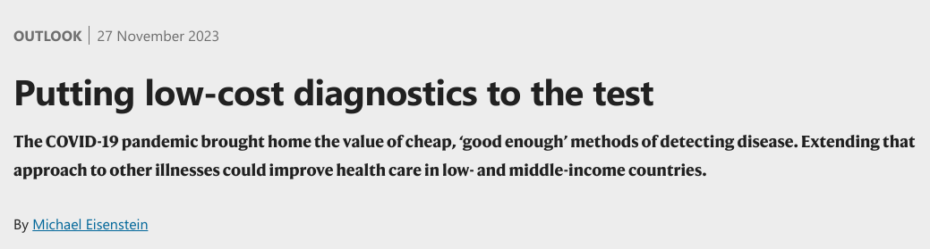 更一般地说,对低收入和中等收入国家负担得起的疾病检测至关重要的即时诊断方法长期以来一直被忽视。COVID-19大流行期间与卫生保健系统的第一个接触点是通过诊断,现在仍然是这样,重要的是要保持这种势头,以确保当下一次大流行袭击我们时,我们不必重新开始。