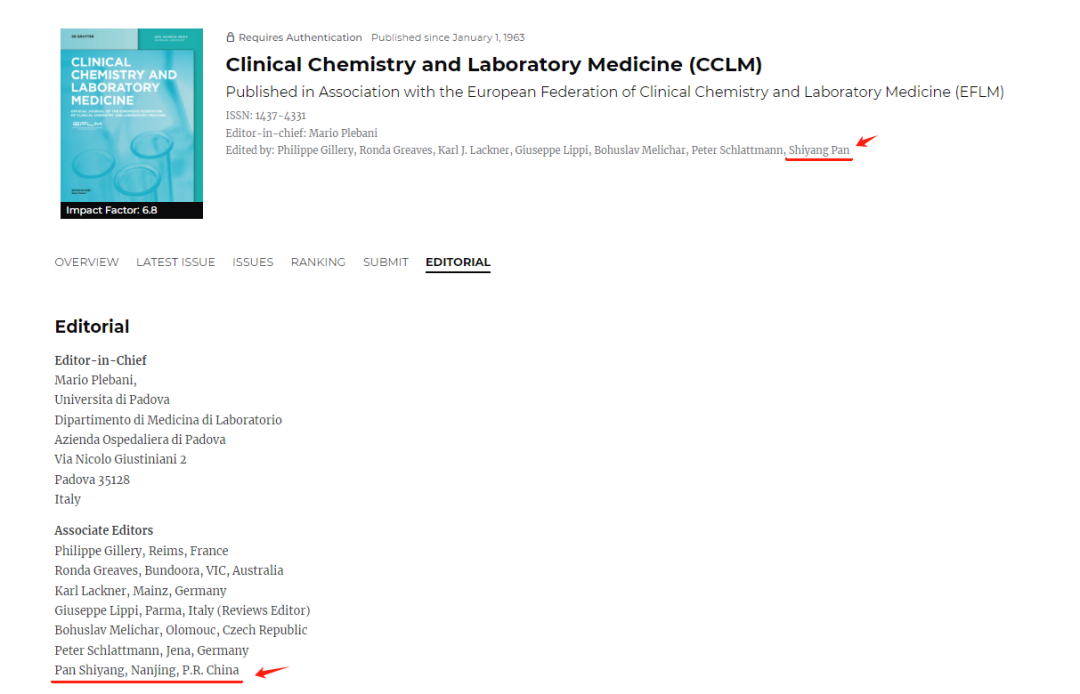 亚洲首位!潘世扬教授担任CCLM杂志副主编