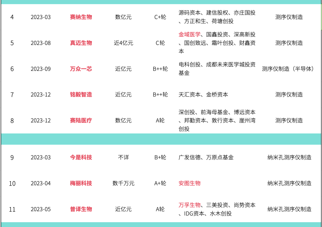 先看一张汇总图: 简单写写,欢迎拍砖,如遗漏,请留言补充。 2023年,基因测序行业的融资,有以下特点: (1)从产业链企业分布来看,2023年内融资主要集中在产业链上游,即测序仪上游制造端。 以NGS测序仪为主,如赛纳生物、真迈生物、铭毅智造、赛陆医疗; 纳米孔测序厂家:今是科技、梅丽科技、普译生物; 投资的逻辑,主要基于“硬科技”、“国产替代”、“测序应用的想象空间”; 华大智造在2022年顺利上市及业绩表现、齐碳科技在2022年末拿到的7亿元融资,对上游赛道的融资有所助力。 (2)国产单细胞测序赛道今年拿到两笔融资:德运康瑞、墨卓生物。 国产单细胞测序赛道,2022年是细分赛道融资高峰,今年融资数量腰斩。 赛道已进入商业化的关键年份,10余单细胞测序国产厂家同台竞技,市场竞争异常惨烈。 资本在观望:这个市场到底有多大?谁能跑出来? (3)产业链中游,2023年未见大额融资;年度内,仅有mNGS、tNGS感染领域的“微岩医学”拿到B轮融资; 未见遗传赛道、肿瘤赛道其他相关企业。 可能原因,产业发展不及预期致资本信心受挫、赛道企业前期估值过高; 后期融资关键要素:企业需证明自我造血及盈利能力、关键资质、关键应用市场的突破。 (4)从融资轮次来看,2023年内融资主要集中在中后期,早期及超早期融资较为困难。 可能原因:相同细分赛道已拥有一定数量玩家,后继者的机会(如技术趋同)需要谨慎评估。 (5)从融资用途来看,2023年年内融资,主要应用于新产品开发、产品注册、商业化拓展等,偏向企业商业化运营阶段;对早期概念阶段、纯研发阶段的投入较少。 (6)传统IVD、ICL龙头开始横纵向布局,如金域医学、安图生物、万孚生物、诺辉健康等;委身巨头不乏是创业企业路径之一( 详见:“巨头”围剿NGS企业:一些信号与拐点)。 (7)投资方多见国资背景。 整体来看,行业尚未出清,资本观望态度浓厚。 考验大家自我生存能力的时候又又又到了! |