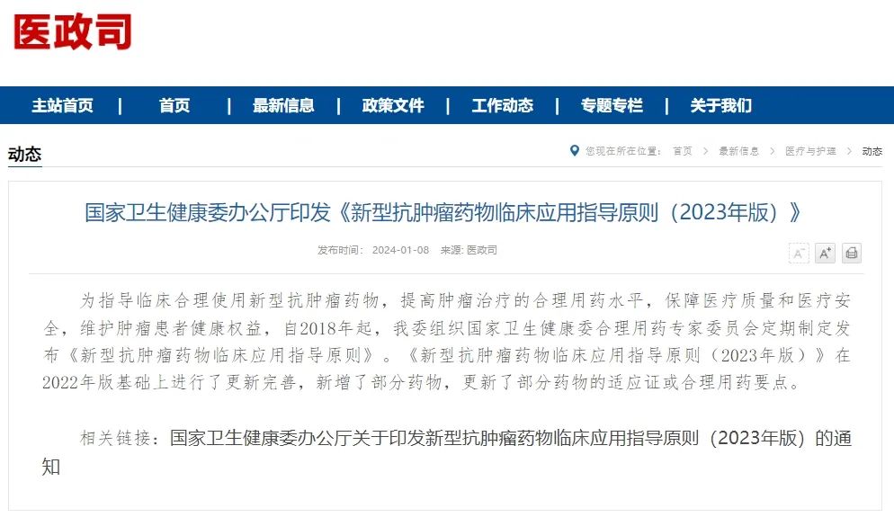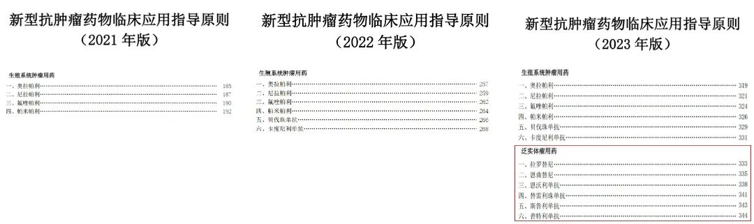 随着临床肿瘤学和循证医学的快速发展,新型抗肿瘤药物陆续获得批准上市,而与之相应的监管措施也在同步加强。自2018年起,国家卫健委已连续六年发布《新型抗肿瘤药物临床应用指导原则》,为新型抗肿瘤药物的合理使用提供更为明确和科学的指导。 近日,国家卫健委发布《新型抗肿瘤药物临床应用指导原则(2023年版)》(以下简称《原则2023》)。《原则2023》指出,抗肿瘤药物的应用涉及临床多个学科,合理应用抗肿瘤药物是提高疗效、降低不良反应发生率以及合理利用卫生资源的关键,为规范新型抗肿瘤药物的临床应用,特制订新型抗肿瘤药物临床应用指导原则。 最新版的《原则2023》在2022年版基础上进行了更新完善,新增了部分药物,更新了部分药物的适应证或合理用药要点。其中,比较大的一个变化是新增了“泛实体瘤用药”部分,药物包括拉罗替尼、恩曲替尼、恩沃利单抗、替雷利珠单抗、斯鲁利单抗和普特利单抗,并指出,这些实体瘤药物均是需要靶点检测的药物。 ▲ 《原则2023》新增需靶点检测的泛实体瘤药物 泛实体瘤用药,顾名思义,就是指这些新型抗肿瘤药物并不局限于特定的肿瘤类型,而是在多种实体瘤中都展现出一定的疗效。无论肿瘤起源于体内的什么地方,也不管它是从什么类型的组织发展起来的,当肿瘤具有药物靶向的非常特定的分子变异或预测药物可能有效时,就可以使用这种类型的治疗。 (1)拉罗替尼(Larotrectinib):适用于符合下列条件的实体瘤成人和儿童患者:经充分验证的检测方法诊断为携带神经营养酪氨酸受体激酶(NTRK) 融合基因且不包括已知获得性耐药突变, 患有局部晚期、 转移性疾病或手术切除可能导至严重并发症的患者,以及无满意替代治疗或既往治疗失败的患者。需要检测靶点:NTRK融合基因(且不包括已知获得性耐药突变)。 (2)恩曲替尼(Entrectinib):适用于符合下列条件的实体瘤成人和12岁及以上儿童患者,经充分验证的检测方法诊断为NTRK融合基因且不包括已知获得性耐药突变,患有局部晚期、转移性疾病或手术切除可能导至严重并发症的患者,无满意替代治疗或既往治疗失败的患者。需要检测靶点:NTRK融合基因(且不包括已知获得性耐药突变)。