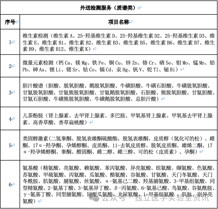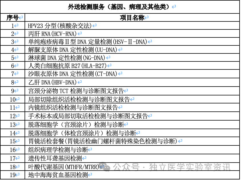 拟检验内容:生化发光等常规检测270类(项目较多,不一一列举),质谱检测6类,基因、病理及其他类样本检验项目明细19类: