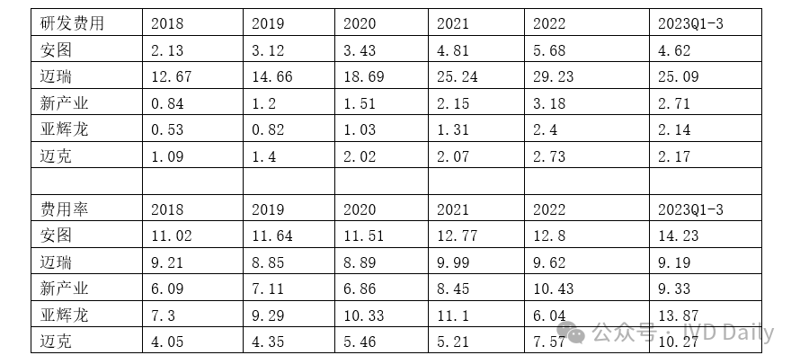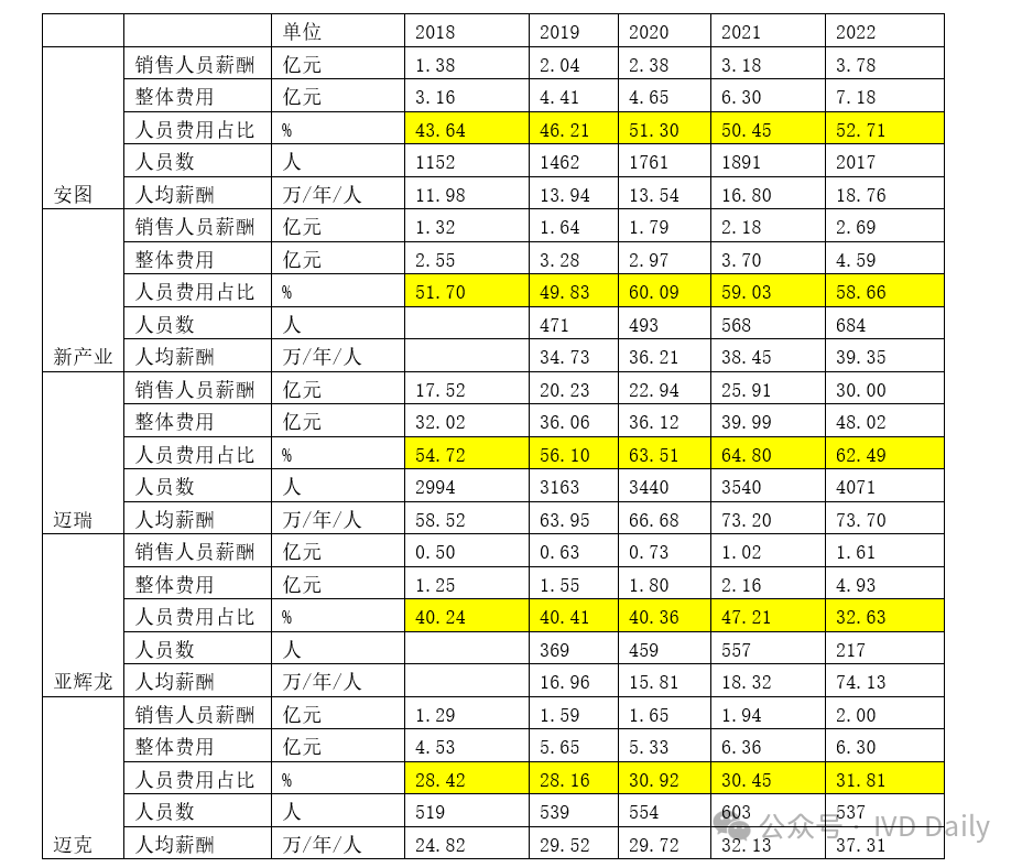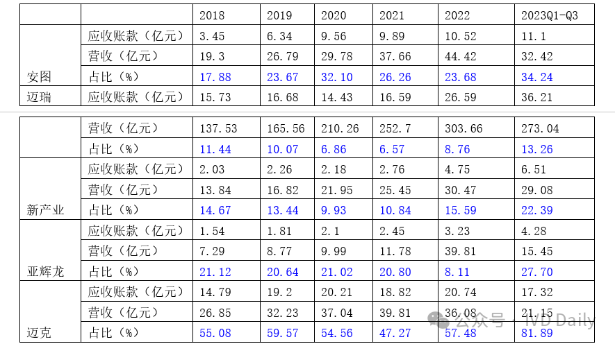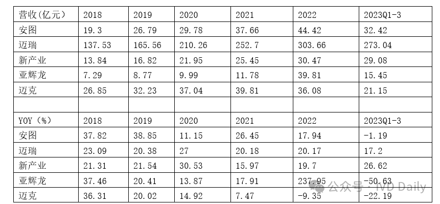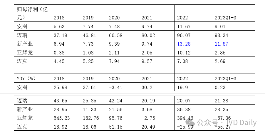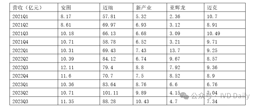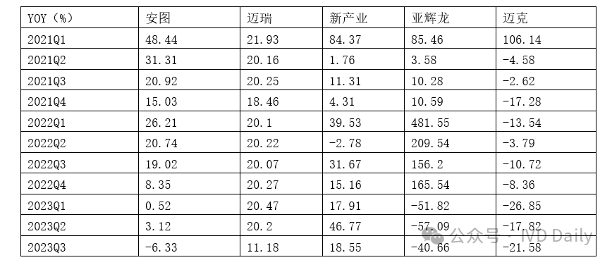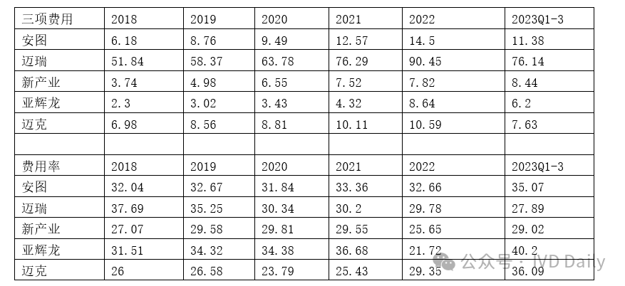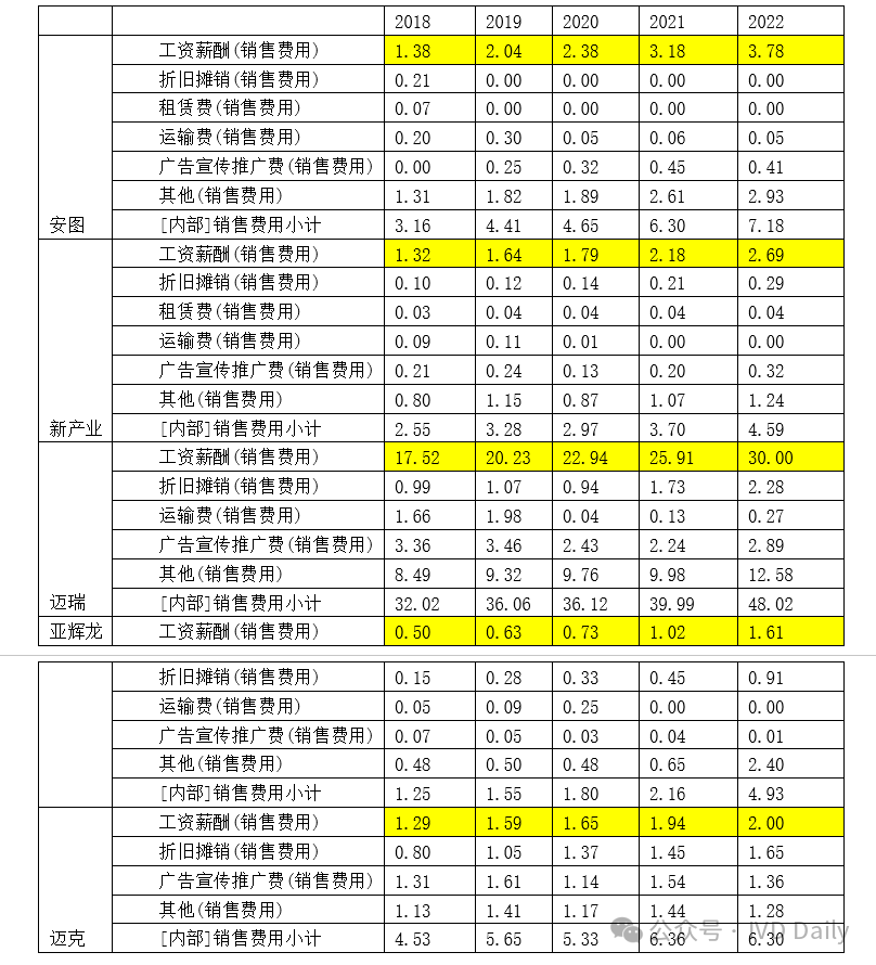 公司经营状况分析 1.盈利能力 1)毛利率对比情况 (1)行业毛利对比情况 新产业毛利最好,迈瑞次之,再分别是安图、亚辉龙,迈克。 (2)试剂机器毛利率拆解 新产业的毛利率试剂稳定在90,安图只有66,主要的原因在于,第一安图还有部分的生化试剂,这部分毛利低,拉低了毛利率。第二加上给经销商的折扣较大,导至毛利率较低。第三是产品的结构不同,导至加价率不同,整体新产业毛利拉安图较大。 (3)安图毛利按照产品结构拆解 新产业的毛利较安图高的原因是因为新产业的经销商的依赖程度低,采取的策略是国内经销模式为:通过公司自身的营销团队在各地目标医疗机构推广产品获取订单并提供售后服务,公司协助经销商进一步开拓市场及维护客户。(这种方式更加切合集采的新形势) (4)按照经销直销方式拆解 直销毛利较低,主要是部分代理产品走直销模式,拉低了毛利率。 (5)季度毛利变化的情况 可以看到安图生物的毛利率逐季向好,主要的原因是磁微粒产品的占比不断扩大,23年Q3已经达到45%,相比22年Q3提升了6个百分点。迈瑞保持稳定,新产业也有小幅提升。 2)净利率对比情况 (1)净利率对比情况 从净利率的情况来看,安图在第一梯队中是最差的,但是远远好于亚辉龙和迈克生物。对比安图与新产业,可拆分毛利影响与费用影响。 净利差距大的原因在于毛利影响与费用影响。安图的毛利率影响差距在较少,费用差距也逐渐的减少。 (2)净利率的季度情况 从季度的情况来看,安图在一季度四季度的净利都较差。新产业则没有明显的季节性且较好。 3)ROE\ROA情况 迈瑞表现最好,新产业次之。迈瑞的利润基本都拿来分红,维持性资本很低,安图账上理财30多亿,还有10多亿的现金,拉低了净资产收益率。 IVD是典型的高利润率、高周转的企业,和白酒的性质有点类似,是A股最好的商业模式之一。因为试剂的拿证周期长达5年,加临床的适应、推广、使用,技术护城河特别的宽。 4)营业外收支及投资收益 因为IVD的试剂有效期是1-3年,所以资产减值损失就是存货跌价损失,23年的存货跌价损失有5400万,一部分是新冠相关产品计提跌价损失。信用减值损失每年都有几千万,可以和迈瑞、新产业做一些对比。 可以看到安图的5年绝对值最大,说明在应收管理、回款管理、信用管理上和新产业、迈瑞还有一定的差距。 2.运营效率 1)应收账款周转对比 (1)应收账款占营收比例 应收账款管理最好的是迈瑞,其次是新产业、亚辉龙,安图,最差的是迈克。因为基本都采取经销模式,所以如何实现和经销商之间的良性互动,加快产品周转,提升应收账款效率,这是企业要重点考虑的问题。 (2)应收账款周转天数 从应收账款来看,迈瑞控制最好,说明他的营销政策切的细、吃的透、绑的紧的策略在行业最优,执行最好。新产业更多是自己营销人员进行定向爆破,获得订单后经销商再跟进。安图更多的是依靠大的经销商,这样应收的管理就比较难。 (3)应收账款账龄情况 虽然安图的1年以上的应收金额才1亿左右,但是对比同行业公司,还是处在较差水平。 2)库存周转对比 (1)库存周期天数对比 整体的库存周期都比较长,新产业因为机器投放的问题,该指标较差。迈瑞最好。 (2)具体库存明细对比 安图:原材料备货3.5亿,主要是活性材料、磁珠、酶和底液。发出产品没有,主要是没有铺借机器的机制,由经销商去铺机器。 新产业:铺出机器1.1亿,大约1000台左右,原材料备货3.4亿,和安图相当,说明对未来非常看好。没有计提存货跌价损失。 亚辉龙:原材料囤货2.9亿,发出商品1.6亿。机器铺的很多,原材料也很充足。 迈克生物:代理部分产品,库存商品6.4亿,较大。 3)应付账款周转对比 应付基本是2-3个月的账期。迈瑞整体最强,达到了70天。 4) 资产周转对比 安图的资产周转效率低于同行业。 5) 现金流情况对比 新产业的收现能力不如安图与迈瑞的原因主要是因为新产业铺了大量的机器出去,现金回收不如净利润、营收的增长速度。 3. 收入与费用 1) 收入对比情况 安图新冠2022年销售6.5亿,亚辉龙22年新冠27.5亿。扣除后安图23年还有15%的增长,亚辉龙有30%的增长。 2) 净利润对比情况 安图的净利已经被新产业超越,说明企业的增长因子,前期营收规划,都不如新产业和迈瑞。亚辉龙和迈克虽然量级还和安图有差距,但是亚辉龙的增长速度还是相当快的。 3) 季度毛利和净利情况 (1) 季度营收的情况 从最近三年的季度数据来看,安图的增长已经有较大的颓势,增幅较小。主要是生化集采,新冠的扰动。新产业体现了良好的成长性。 (2) 季度净利的情况 安图的净利都是小个位数的增长,不如迈瑞和新产业。 4) 费用对比情况 (1) 管理费用对比 新产业的管理费用较低,22年出现异常主要是冲回前期计提的股权激励8000万。 (2) 销售费用对比 安图的销售费用率稳定在16个点,在行业处在中等水平。 销售人员费用占整个销售费用比重 人数:除了迈瑞、安图,国内营销的人数基本都是500多号人,说明覆盖全国的营销网络需要的人数基本都是固定的,但是产生的效果可能是不同的效果。迈瑞的人数接近3000人,是实现99%以上三级亿元覆盖的关键。安图的人员是第二多的,但是属于数量上领先,待遇上较差。 营销人员的薪酬:从安图的薪酬来看,营销人员的薪酬增长速度较快,但是平均薪酬只有新产业的1/3,远远不如新产业。亚辉龙是新冠的影响,导至薪酬