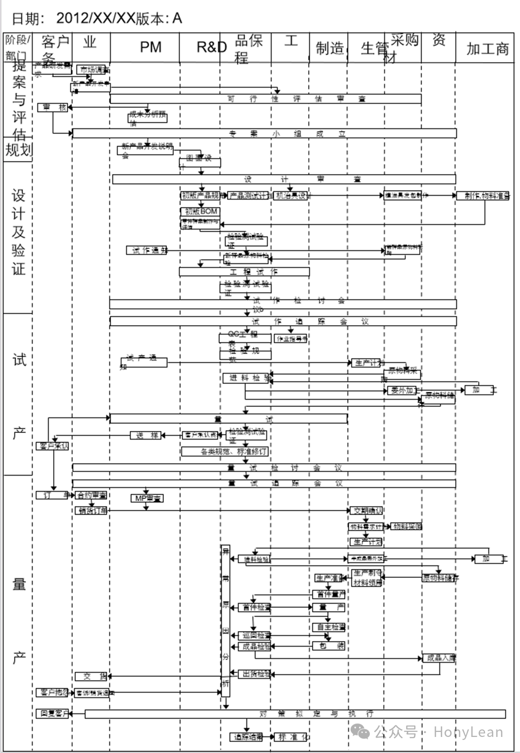 『产品项目整合部』组织与系统(PM, Project Management) 组织定义: 产品项目整合部(PM, Project Management)为一跨区域之新产品开发整合单位.负责规划与整合新产品开发活动中项目小组成立、管控项目执行进度、成本评估、跨部门协调等统合性工作,以确保开发出符合客户需求之产品. 作业范围(起点与终点): 当新产品之基本规格确认后,所有新产品开发活动即由产品项目整合部接手统筹规划与管控,一直到新产品第一次量产后三个月内之质量问题解决.在此新产品开发期间,公司内所有部门必须全力配合产品项目整合部的开发项目进度掌控. PM定期运作模式: (1)每周四下午14:00~16:00PM以视频会议召开区域”新产品项目开发进度审查会”,参与人: 深圳总公司(PM/研发/品保/工程主管)苏州营运中心(张副总/工程、品保、生技、厂务、制造一级主管与参与新产品项目开发各部门核心成员 )其他(若有必要请模具或关键材料厂商代表出席)(2)每周五12:00前,PM将修订过之”新产品开发时段计划表”传给相关人员.(3)重要之新产品项目开发进度若有延误之风险, PM要立即以会议或 E-mail方式告之相关人员.相关信息一定要CC给总经理/张副总. PM组织功能图 PM项目日常管理 PM会议前准备:汇整与发行新产品在开发进程中的[开放议题] ※PM工程师于每周五汇总整理新产品在开发过程中的[开放议题],确定各项议题的第一责任人与第二责任人.并将整理好的[开放议题]资料呈交PM主管审核.PM主管经确认无误后,于下班前以E-mail的方式发行给相关部门高层主管与公司领导.(第一责任人是新产品成员,第二责任人是各部门最高主管) ※发行后的[开放议题]资料要求各部门主管必须于下周星期一10:00前以E-mail的方式回复(为了防止邮件过多,仅回复PM责任工程师即可),以便PM能及时更新资料.否则在星期一下午14:00点的会议中将记录未回复人员的缺失. min) (B)上周PM周会会议记录追踪 (15 PM依[会议记录]中的事项预计完成时间跟进责任人的执行效果与达成状况.于每周一的PM周会前更新完毕上周的[会议记录].在会议中再次Review记录事项的执行效果与达成状况. 备注:※ C-A-P-D ※ 「第二责任人」为参与会议的部门主管‚负政治责任.「第一责任人」为第二责任人指派该部门内部负责实际执行人员. |
