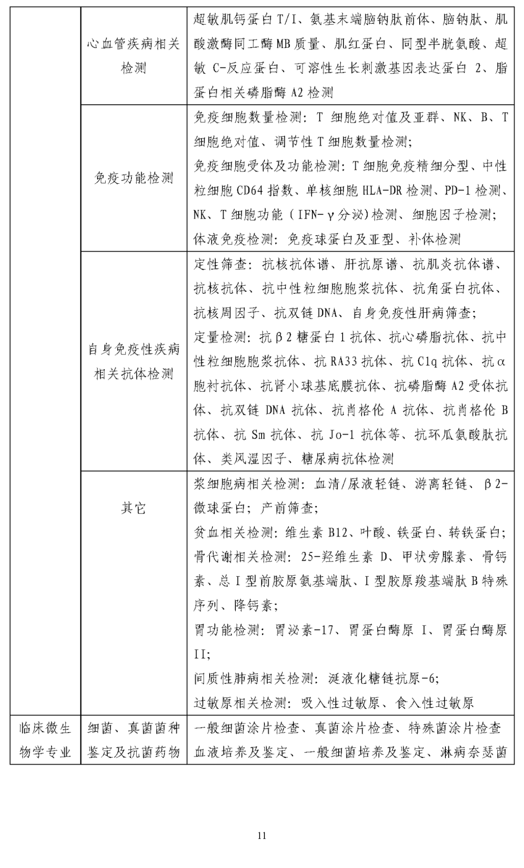 必备检验项目清单共设置了5个专业(临床血液及体液学专业、临床生物化学专业、临床免疫学专业、临床微生物学专业、临床细胞分子遗传学检验)和26个分类。