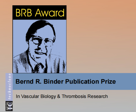 值得一提的是,为了纪念TC的创始人Bernd R.Binder博士(1945-2010)及其在业内的杰出贡献,凝血界设立了首屈一指的BRB(“Basic Research in Blood Diseases”)出版奖。该奖项在凝血领域具有高度权威性和影响力,旨在表彰在血液疾病基础研究领域做出杰出贡献的科学家和他们的研究成果。该奖项举办11年来,每年均有众多在凝血机制、血栓形成、止血障碍等血液疾病基础研究领域取得突破性进展的科学家获此殊荣。他们的研究成果不仅推动了凝血领域的发展,也为血液疾病的预防和治疗提供了新的思路和方法,其获奖文章几乎全都来自于Nature, Science, Blood, Circulation, JACC等顶级期刊。