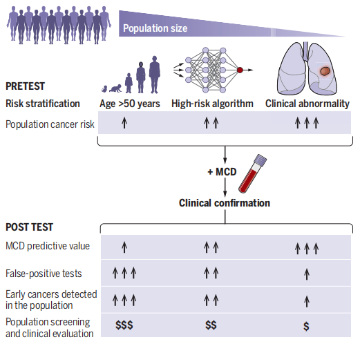 近日,顶刊Science发表了一篇题为“Deploying blood-based cancer screening”的文章。文章指出癌症的早期诊断是癌症治愈的主要决定因素,如可在前期发现癌症,则可大大提高患者的生存率。基于血液的多癌种检测(MCD)以及成像和人工智能(AI)算法的进步,有可能改变早期癌症检测。但是,这些创新并非没有健康和财务风险,它们同时带来了机遇和挑战。 图片来源:Science 目前最先进的MCD检测--Galleri 一些MCD检测方法正处于不同的发展阶段,其中Galleri试验是临床研究中最先进的,并且正在美国和英国监管机构的批准谈判中。Galleri使用40毫升血液提取血浆中的游离DNA,如肿瘤存在时,其中一部分可能来自肿瘤细胞(ctDNA)。鉴于整个癌症基因组中CpG二核苷酸的大量DNA甲基化变化,该测试应用亚硫酸氢盐测序注释超过10万个基因组位点,使用算法识别潜在的癌症信号和可能的组织来源。其他新出现的基于血液的癌症检测方法包括检测癌症来源的ctDNA的大小分布改变(DELFI),或检测频发突变和异常蛋白标记物的存在(CancerSEEK)。除了这些和其他ctDNA衍生的分析外,癌症相关的血液分析物还包括高通量蛋白质组学、循环肿瘤细胞、外泌体、血小板相关RNA和cfRNA。 MCD筛查试验在发现早期的、 可能治愈的癌症方面有多有效? 初步研究比较已知有不同类型癌症的患者与健康的个体,当特异性设置为99.5%时,报告了Galleri筛查方法的总体敏感性,I期患者为16.8%和二期患者为40.4%。在PATHFINDER临床试验中,6621名50岁以上健康个体,1.4%在Galleri筛查检测中癌症信号阳性;其中,最终有38%被确诊癌症,而62%似乎是假阳性。这种错误信号可能需要昂贵的成像和侵入性测试,以排除癌症的存在,并可能导至不必要的焦虑。在36例被Galleri正确确诊为癌症的病例中,有14例存在以前未被怀疑的I期或II期癌症,即最初筛查人群的0.2%被发现患有潜在的可治愈的早期癌症。一项大级别的临床实验正在英国进行,包括将14万名50-75岁的无症状个人随机分为标准临床癌症筛查方案+每年Galleri检测共3年,以及只进行临床筛查,以观测Galleri是否可以使癌症诊断时处于更早期阶段。 实施MCD筛查检测的关键问题 关于实施MCD筛查检测最关键的问题是,它们是否最好适用于一定年龄以上的所有人,或者人工智能的进步是否会实现更个性化的风险筛查策略。癌症风险随着年龄的增长而增加,在西方国家,50岁时的年发病率估计为0.5%,65岁时为1.5%。筛查试验的阳性预测值(PPV),与分析固有的特异性和敏感性以及在测试人群中的癌症患病率有关。当人群中的癌症患病率上升时,PPV也会随之跃升。 当前一代的癌症风险筛查通常专注于单一的癌症类型,也有完善的算法用于对携带高渗透遗传基因突变的个体进行癌症筛查。人工智能驱动的癌症风险评估复杂算法可将经典的风险因素与更难评估的因素结合起来,包括低外显率的遗传变异、不同的环境暴露和其他健康指标。因此,个体化癌症风险评估的发展可能使基于血液的MCD筛查更有效地针对癌症患病率增加的人群,从而改善PPV。 MCD阳性信号患者的 临床评估也至关重要 除了MCD检测的选择标准外,对癌症信号阳性患者的临床评估对其部署也至关重要。对于Galleri测试,DNA甲基化模式提供了关于组织起源的初步线索。全身成像,比如,PET扫描和全身磁共振成像可以考虑,但灵敏度差、成本高。值得注意的是,在PATHFINDER研究中,90例Galleri阳性患者中有44例接受了侵入性诊断程序,以确定是否存在癌症。如在最初的阳性检测后没有癌症诊断,GRAIL目前提供在3-6个月内免费重复Galleri检测。常规应用血基验证检测比如CTC检测可能会减少假阳性结果。然而,在没有临床确认的情况下,血液检测的癌症阳性信号要么代表假阳性结果,要么是尚未检测到的恶性肿瘤,值得持续警惕,这是一个未解决的困境,可能是严重焦虑的来源。 根据风险进行多癌种筛查 以年龄为唯一风险因素的以人群为基础的筛查可能对人群中发现的早期癌症总数有最大的好处,但由于发病率低,而且成本高,因此有相当多的假阳性结果。使用基于人工智能的风险计算器进行风险分层,可能会增加人群患病率,从而提高检测的阳性预测值(PPV)。应用多癌检测(MCD)来评估意义不确定的影像学病变可能是高PPV的另一个相关临床应用。在高危人群中,英国一项针对5461名患者的研究报告称,在临床确诊之前就被怀疑患有癌症的患者进行Galleri检测的PPV为75%(见下图)。 根据风险进行多癌种筛查。图片来源:Science 总结与讨论 MCD筛查作为临床护理范围内的一种新工具的作用,提出了一个前所未有的机遇和重大挑战。在大规模部署前要仔细考虑几个问题,早筛能否真的利用这种早期与晚期癌症预后的差异,让癌症都发现在早期,改善预后,是存疑的。比如甲状腺癌的早发现反而带来了过度治疗的问题。一个看起来健康但在血液测试中癌症信号呈阳性的患者应该如何接受咨询?随着MCD筛查越来越多,这种情况可能有多普遍?很多癌症早筛受限于假阳性、假阴性等问题,整体收益不是特别高。因此,对于癌症血检用于早筛,一方面会是希望能筛查一些现在没法常规早筛又值得发现在早期的癌症,另一方面也要应对所有早筛都要面对的假阳性假阴性问题,特别是在普遍应用后,群体上的假阳性假阴性应该如何处理。 |