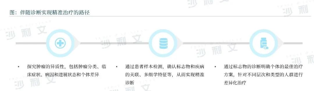 伴随诊断是肿瘤治疗进入靶向治疗、免疫治疗的精准化阶段后的产物。伴随诊断通过测量人体内变异基因或蛋白的表达水平,筛选出最合适靶向用药的人群,并依据结果针对性地进行个体化治疗,从而降低药物使用风险并提高治疗有效率。