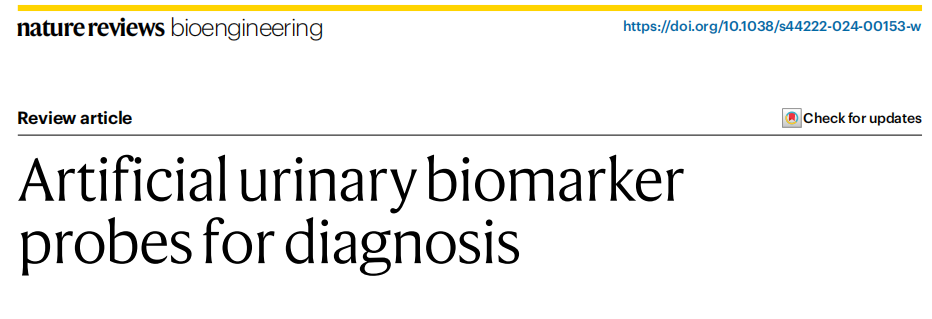 尿液分析是一种广泛应用于健康监测和疾病诊断的医学检测方法。然而,传统的尿液分析依赖于内源性生物标志物,具有有限的诊断敏感性和特异性。为了解决这些问题,分子光学探针已经被设计成与体内疾病生物标志物相互作用,并产生人工尿液生物标志物(AUB)。然后AUB排泄到尿液中,通过尿液分析远程检测疾病。近日,一组来自新加坡的研究团队在杂志Nature reviews bioengineering上发表了一篇关于人工尿液生物标志物探针(AUBP)的综述文章。作者首先介绍了AUB探针,并强调了AUB相对于内源性尿液生物标志物的优势。然后讨论了固有AUB探针和分泌AUB纳米探针的设计原理,以及在尿液检测中的相应检测方式。最后总结了AUB探针在疾病诊断中的应用,并讨论了当前面临的挑战和促进其临床转化的策略。