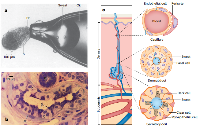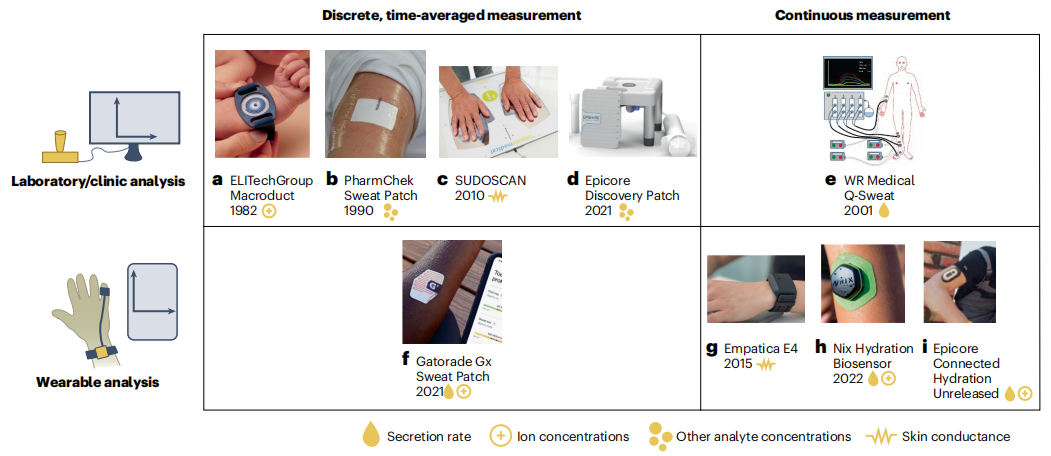 Nature Biotechnology上发表了一篇题为“汗液传感的挑战和前景”的文章。文章指出,汗液传感领域中一些关键挑战已经得到解决,包括测量汗液分泌率和收集足够的样本量。然而,除了评估囊性纤维化和局部神经功能外,准确测量感兴趣的分析物及其与健康指标的生理相关性的能力仍有待确定。作者预计汗液测量将继续涉及如下应用领域,例如运动员和体力劳动者的水合监测,以及医疗和健康监测相关药物和激素。 图片来源:Nature Biotechnology 一、汗液分泌生理学 汗腺广泛分布于体表,手掌和足掌密度最高(如下图)。遍布全身的小汗腺主要参与体温调节并产生一种含水量高的透明液体。局限于腋下和腹股沟的的大汗腺产生含有蛋白质、脂质和固醇的乳白色液体,主要在应激或性刺激时被激活。汗液生成的方法有两类:药理刺激和自然或生理刺激,后者包括热刺激,运动刺激,心理刺激或其组合。药理刺激,通常包括通过应用药物直接刺激汗腺上的受体,并触发汗液产生。 汗腺结构与生理。图片来源:Nature Biotechnology 二、汗液分析装置 临床或商业上已经建立了几种汗液感应模式,其中许多都被设计用于分析单一样本中的单一分析物。例如,Macroduct汗液收集系统用于诊断囊性纤维化(图a),FDA批准的PharmChek汗液贴片,提供法庭允许的证据,用于药物滥用检测(图b)。另外还有用来检测神经病变的Q-Sweat定量汗液测量系统(图e)以及SUDOSCAN系统(图c)。 集成的可穿戴设备,比如连续监测Empatica E4手表,可检测皮肤电导率(图g),它最著名的用途是“测谎仪”。2021年发布的Gatorade Gx汗液贴片测量汗液损失和氯化物(图f),帮助评估水合状态。最近还推出了两种连续监测电解液和汗液率产品,Nix(图h)以及Epicore(图i)系统,效果仍有待观察。 商用汗液监测设备。图片来源:Nature Biotechnology 三、持续出汗监测的挑战 很多资金充足但不成功的企业突出了当前该领域的挑战。许多追求商业化的目标达到了瓶颈,不是技术,而是生物学的瓶颈。比如 Electrozyme致力于测量汗液电解质包括乳酸,但直到现在汗液和血液乳酸也未发现明确的相关性。长期持续的人口规模的研究对于确定特定分析物的生理相关性将是很重要的。在设备和实验设计过程中,仔细考虑与汗液的刺激、收集、储存以及和分泌率分析相关的广泛技术挑战,将为该领域的未来进展奠定基础。 汗液传感领域的创业历史。图片来源:Nature Biotechnology 四、应该如何评估汗液传感的研究方向? 是否存在未满足的需求? 1. 是的,需要更容易获得和非侵入性的样本收集的单点测量应用,以及更高的汗液检测精度。潜在的应用包括身体检测、家庭检测、邮寄到实验室的检测和在诊所进行的非侵入性检测。 2. 是的,需要无创和可穿戴的连续测量,以及更高的精度和可靠性。潜在的应用包括持续的个人健康跟踪、体育运动和工人安全。 3. 是的,它对汗液的基础科学有影响,提高了我们对分析物的分配和血液相关性、区域腺体的补充、有效的体温调节等的理解。 4. 没有这些吗?在开始这个项目之前,请重新评估其动机。 用汗液来测量方法有用吗? 1. 是的,已知被分析物的水平与血浆中的水平相关。这在小的疏水分子中更为常见。 2. 是的,汗液中水平能提供在汗水中唯一或更准确的信息。例如囊性纤维化诊断、体液流失监测和基础科学研究。 3. 这些都不是吗?如果设备测量不能反映任何更深层次的生理信息,它可能不值得研究。 用汗液来测量方法可行吗? 1. 是的,传感器具有足够的灵敏度、选择性、稳定性和重现性,可用于分析物和应用。此外,如果有出汗率的影响,通过集成流汗率传感器或使用分析物比率(例如,与对照蛋白,如白蛋白),传感器读数可以得到适当的校正。 2. 没有?在继续进行之前,必须开发传感器平台和/或与之集成的排汗率检测。 汗液传感领域在过去几十年里的增长。图片来源:Nature Biotechnology 五、未来成功的基础 作者认为,汗液传感的短期商业应用,除了在囊性纤维化和神经病变,可能仅限于电解质流失、药物滥用、药物依从性和测定类固醇等激素。其他的愿景也令人兴奋,但目前还缺乏生物学或技术基础。成功的商业化将取决于能够良好地描述个体之间的基线水平、敏感性和排汗率的差异,以及确定诸如年龄、性别、种族、健康和医疗状况等影响因素。 另外,显然有必要通过基础生理学研究来推进对汗液成分的基本理解。直到今天,该领域还缺乏对汗液组成及其与血清相关程度的深入了解。 |