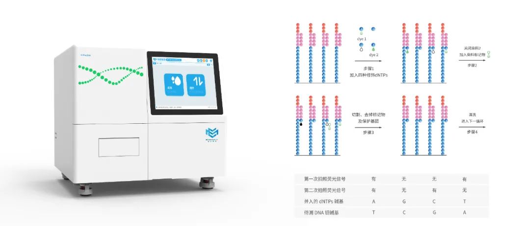 铭毅自主研发的UniSeq2000单色荧光高通量基因测序平台,采用微流控芯片技术,结合具有自主知识产权的单色荧光发光测序化学技术,实现边合成边测序,可以对不同种类的科研和临床样品进行基因测序。