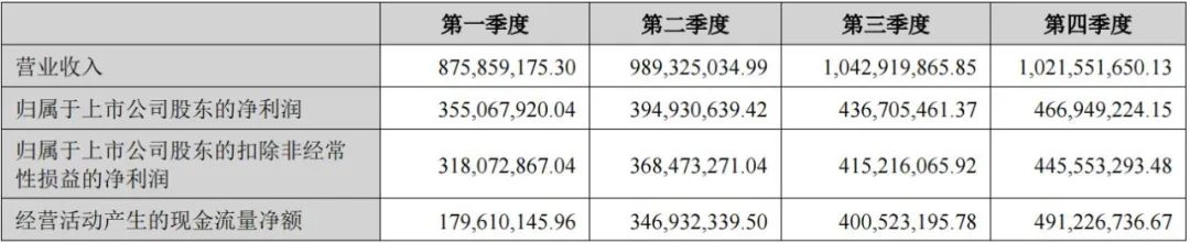 2023年新产业生物营收39.30亿元,同比增长28.97%,净利润16.54亿元,同比增长24.53%。营收增长率在目前已披露财报的14家国产IVD上市企业当中是最大的。新产业生物2023年净利润增长率在目前已披露财报的14家国产IVD上市企业当中,仅次于九强、普门、利德曼,在净利润10亿以上的IVD企业中,净利润增长率是最快的,在净利润5亿以上的IVD企业中,净利润增长率仅次于九强。分季度看的话,新产业生物2023年四个季度营收依次为8.76亿、9.89亿、10.43亿、10.22亿,净利润依次为3.55亿、3.95亿、4.37亿、4.67亿,无论营收还是净利润,全年整体均呈上升趋势,说明经营比较稳健。