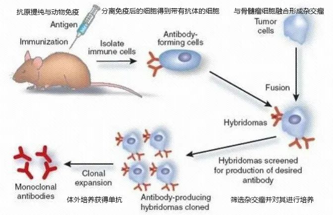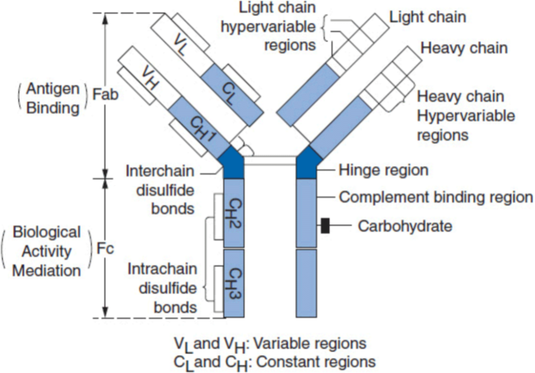 一、什么是抗体 抗体(antibody,Ab):是由抗原进入机体刺激B细胞分化增殖为浆细胞而合成并分泌的一类能与相应抗原发生特异性结合并产生免疫效应的含有糖基的球蛋白。抗体分布于体液(血液、淋巴液、组织液及粘膜的外分泌液)中,主要存在于血清内。 二、抗体的发现及发展 学者们在研究病原菌的过程中,发现在感染者的血清中有“杀菌素”(bactericidins),抗体被发现。但由于实验条件落后,抗体的结构的解析却进展缓慢。 英国生物化学家Frederick Sanger成功解析了同样身为蛋白质的胰岛素的化学结构,受到启发的美国生物学家Gerald Maurice Edelman用β-巯基乙醇处理免疫球蛋白G,将其分解成两条链,根据分子量大小分别称为重链与轻链。 Edelman与Rodney Robert Porter(Sanger的博士研究生)结合两人多年的研究结果,提出了比较成熟的抗体分子模型。 Edelman和Porter对抗体1300多个氨基酸序列进行了测定,并继续深入研究抗体的结构,陆续提出了越来越精确的抗体分子结构,得到我们目前对抗体结构的认识。 三、抗体的结构 抗体是一类大分子蛋白质,形状像字母“Y”。 1 重链(H链)与轻链(L链) 由两条完全相同的重链(H链,氨基酸数目多,相对分子量大)和完全相同的轻链(L链,氨基酸数目少,相对分子量小)组成,链间由二硫键连接。每条重链和轻链分为氨基端(N端)和羧基端(C端),其中重链类型决定抗体亚型。 2 可变区(V区)与恒定区(C区) 通过对H链或L链的氨基酸序列比较分析,发现:其N-末端序列变化很大,称此区为可变区(V区);C-末端氨基酸则相对稳定,变化很小,称此区为恒定区(C区)。因此,整个抗体分子可以分为可变区(V区)、恒定区(C区)。 1)抗体可变区(V区) 在“Y字母”头部有一片区域变幻多端,主要是负责识别形形色色的抗原分子,这块区域称为可变区(variable region,V区),重链和轻链的V区分别称为VH和VL。V区氨基酸的组成和排列决定抗体的抗原结合特异性。 由于病原体和病毒的种类繁多,而他们的表面又存在诸多不同的免疫原,所以抗体要识别它们,其“Y”形结构的可变区部分也相应是千变万化的。 其中,在可变区内有一小部分区域的氨基酸序列非常容易发生突变,称之为高变区(hypervariable region,HVR)【也叫互补决定区complementarity determining region,CDR)】,HVR的氨基酸序列就决定了该抗体结合相应抗原的特异性。 VH和VL的3个CDR共同组成Ig的抗原结合部位,决定抗体的特异性,是抗体识别及结合抗原的部位。 可变区中非HVR部位的氨基酸组成和排列相对比较保守,称为骨架区(framework region,FR)。 2)抗体恒定区(C区) 可变区以外的序列就是抗体的恒定区,重链和轻链的C区分别称为CH和CL。 针对不同的抗原的同一类的抗体,V区是不同的,但是恒定区是相同的。 3 抗原结合域(Fab)与结晶区域(Fc) 1)Fab段为抗原结合片段(fragment of antigen binding,Fab) 相当于抗体分子的两个臂,由一个完整的轻链和重链的VH和CH1结构域组成。 Fab段包含完整的可变区,以及恒定区的CH1区域。Fab可识别结合抗原靶标,决定单抗的特异性和亲和力。 2)Fc段为可结晶段(fragment crystallizable,Fc) 相当于Ig的CH2和CH3结构域,是Ig与效应分子或者细胞相互作用的部位。Fc段仅指Ig恒定区CH2和CH3的区域,相当于Y字结构下面那一部分。Fc是抗体与效应分子或细胞(FcR、FcRn、补体)相互作用的部位。 四、单抗的发现 五、什么是单抗 单克隆抗体(monoclonal antibody,mAb),是由单一B淋巴细胞克隆产生的高度均一、仅针对某一特定抗原表位的抗体。 六、单抗的发展与分类 1986年,全球第一个单抗治疗肾移植排斥反应的鼠源化抗体(OTK3)宣告上市,但由于人的免疫系统对鼠源抗体有较高的免疫原性,限制了其应用也使抗体治疗陷入低潮。 1984年,Morrison等人将鼠单抗可变区与人IgG恒定区在基因水平上连接在一起,成功构建了第一代人-鼠嵌合抗体,这种抗体的Fab区是鼠源的,Fc区是人源的。嵌合抗体虽然可以部分解决异种蛋白的排斥问题,但免疫源性还是比较高。 1986年,Jones等人成功构建了第一个改形抗体,使其只有重链和轻链的可变区部分包含3个鼠源性抗体的互补决定区(CDR),其余部分均为人源性的,人源性可达90%以上。这次改形的抗体被称为CDR移植抗体和人源化抗体,人源化单抗基本解决了鼠源性单抗的免疫原性,但人源化过程仍很繁复且费用昂贵。 1990年,噬菌体展示文库技术被证实在重组抗体生产中的作用。1994年转基因小鼠作为生产全人源化抗体的载体问世,就此全人源抗体问世,目前全人源化单抗主要由以上两项技术制备。 2002年,全球第一个全人源化单抗阿达木单抗上市,截止2019年,该明星产品已经连续8年蝉联全球药品销售榜首。 鼠源单抗、人-鼠嵌合单抗、人源化单抗、全人源单抗这四种单抗之间的区别,如下图: 参考来源 编辑:芝麻核桃 |