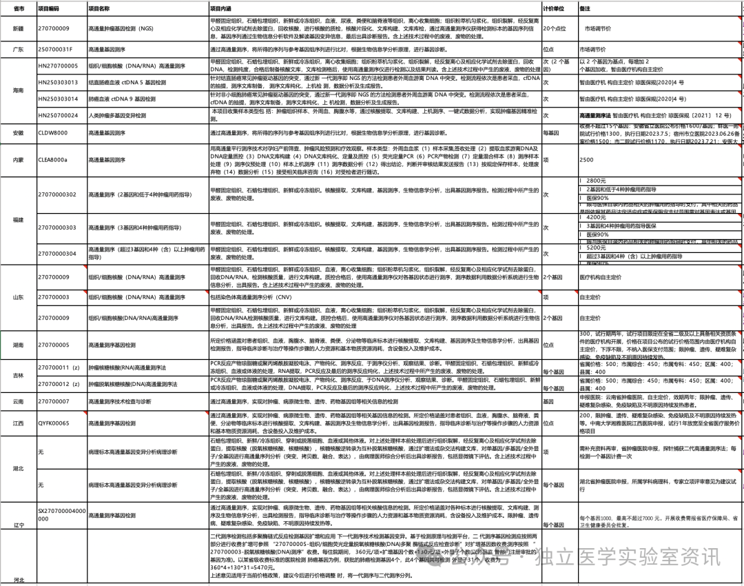 肿瘤基因检测经过十余年的发展,是时候刮骨疗毒,真正回到新技术应用的价值初心。十年前,深信精准医疗在未来会显著深远的去改变行业的生态格局,肿瘤NGS应运而生,双星子企业诞生。而后无数的机构加入肿瘤基因检测赛道,模式有直营,有代理,还有2C。检验天然跟诊断相伴相生,肿瘤基因检测跟药企经历了高光时刻,随后因2022年骗保事件被反噬。站在个人视角,不知道大家的心情是沉重,觉得以偏概全,还是……曾经,我和我的朋友们,接过很多询问,是否可以改报告,都是直截了当不可以。还有朋友提到,从ICL换到IVD后,摆脱7*24小时的待命,简直不要太爽。难道是有什么比命更重要,让医检人坚持在这里,相信行业内大多数人的良知。站在企业视角,大多数企业,在推动合规,相信从无序到有序,规范是为了更好的发展。关于物价,目前已有14省份有高通量测序物价(感谢热心网友提供部分物价,经整理呈现) 关于样本外送规范,目前已有江西、深圳、山西、陕西、福建、湖南、天津、新疆、广西、江苏、上海、昆明、山东、四川达州、河北等15个地区发布样本外送规范。早在2021年江西省发布《关于印发江西省医疗机构样本外送检测及外购药品(器械)若干规定的通知》。医疗机构开展的基因检测项目必须是诊疗规范、临床诊疗指南、药品说明书或专家共识明确需进行基因检测,对患者早期筛查、遗传易感性评估、诊断、治疗及预后监测有明确意义的检测项目,确保基因检测的有效性和安全性。外送基因检测结果互认。通过省级以上卫生健康行政部门技术验收且参加相关质量评价并合格的医疗机构临床基因检验实验室或检测机构开展的相关基因检测数据结果(不含临床诊断结果),我市其他医疗机构应当认可。鼓励医联体内部开展样本外送检测服务,城市医疗集团或县域医共体的牵头医院应当具备向成员单位提供医学检验、病理诊断等服务能力,为区域内提供同质化、标准化服务。疫情后史上最严格的监管政策出台,已经在对行业进行了全面规范和整顿,一些企业不得不进行裁员以降低成本。雪崩的时候,没有一片雪花是无辜的,希望经此刮骨疗毒,真正回到新技术应用的价值初心。