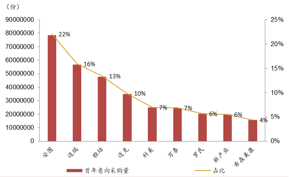 意向采购量国产品牌全线爆发。整体来看安图超过迈瑞,罗氏诊断仅排第四。 *** 按中标数量来看:科华第一(7项),罗氏诊断第二(6项),新产业、长光华医并列第三(各5项)。 联盟集采后免疫诊断市场也初现端倪;在国产品牌中,安图在发光领域领先尤其是传染病是优势项目,而迈瑞则在HCG、性激素和糖代谢检测方面具有优势。 集采为中国头部IVD企业开辟了更为广阔的一线市场机会。迈瑞明确表示,集采机遇加快了其在高端医院的渗透,持续提升三级医院的收入占比。据其此前年报披露,