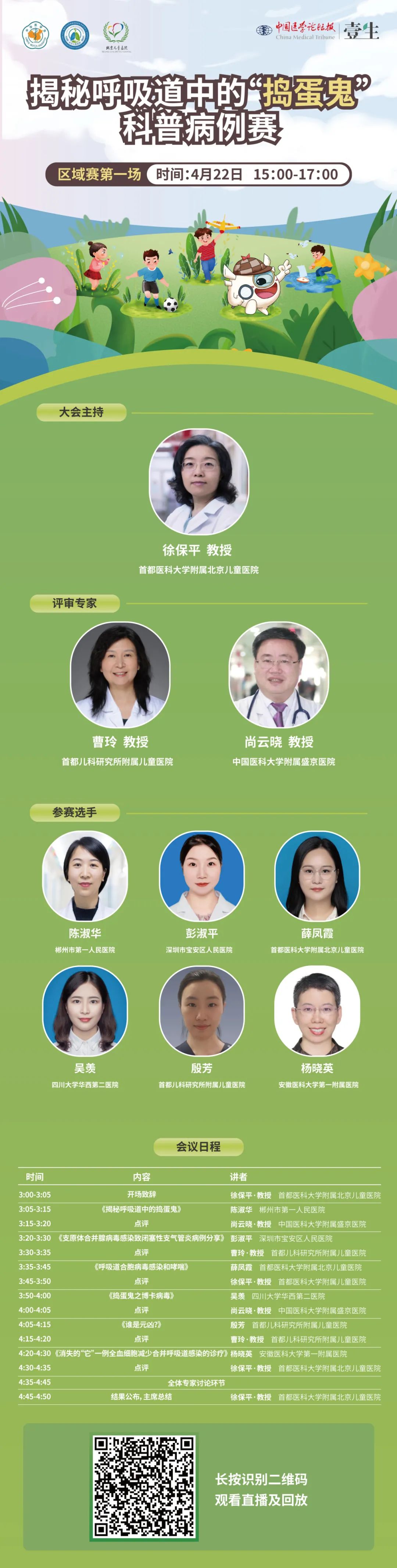20余位全国儿科,呼吸科,感染科专家 将作为病例评审参与9场预选赛 每场将有两名选手入选半决赛 角逐3名决赛名额