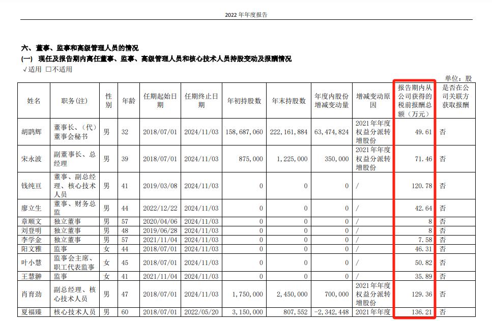 4月19日,亚辉龙发布2023年年度报告。报告期内公司实现营业收入20.53亿元,同比减少48.42%;归属于上市公司股东的净利润3.55亿元,同比减少64.92%;归属于上市公司股东扣除非经常性损益净利润2.20亿元,同比减少77.00%;基本每股收益0.63元/股。 亚辉龙近日发布2023年度年报,大体上浏览了一遍,发现了一个有意思的地方。同行很多IVD企业都在减员、缩减预算、高管降薪,没想到亚辉龙的高管团体2023年集体涨薪了,有的幅度还不小,我们来看和2022年的对比,单位都是万。 4月19日,亚辉龙发布2023年年度报告,同日亚辉龙发布公告称公司拟向全体股东每10股派发现金红利人民币2.73元(含税)(约1.55亿元)。截至2024年3月31日,公司总股本568,308.500股,以此计算合计拟派发现金红利人民币1.55亿元(含税)。本年度公司现金分红总额占合并报表实现归属于母公司股东净利润的比例为43.7%。亚辉龙发布未来三年 (2024-2026年)股东分红回报规划,公司实施连续、稳定的利润分配政策,公司的利润分配应重视对投资者的合理投资回报,在满足公司正常生产经营的资金需求情况下,如无重大投资计划或重大资金支出等事项发生,公司将积极采取现金方式分配利润。在满足现金分红条件时,公司每年应当以现金形式分配的利润不少于当年实现的可供分配利润的10%。