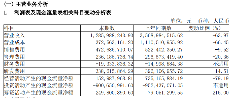 4月27日,诺唯赞披露2023年年报,公司实现营业总收入12.86亿元,同比下降63.97%;归母净利润亏损7095.62万元,上年同期盈利5.94亿元;扣非净利润亏损1.93亿元,上年同期盈利5.97亿元;经营活动产生的现金流量净额为1.53亿元,同比下降79.19%。  分行业来看,诺唯赞的研究和试验发展业务收入达到10.3亿元,毛利率为74.31%,相比上年减少11.37%;医药制造专业营收2.53亿元,毛利率57.8%,增加13.28%。 分产品来看,生物试剂卖了9.43亿,同比减少-53.06%;毛利率78.60%,同比减少-25.36%,减少7.94%。诊断试剂营收2.48亿,同比减少-82.72%,毛利率59.30%,增加14.16%。技术服务的营收5959万,同比减少44.73%;毛利率35.37%,减少33.41个百分点。
