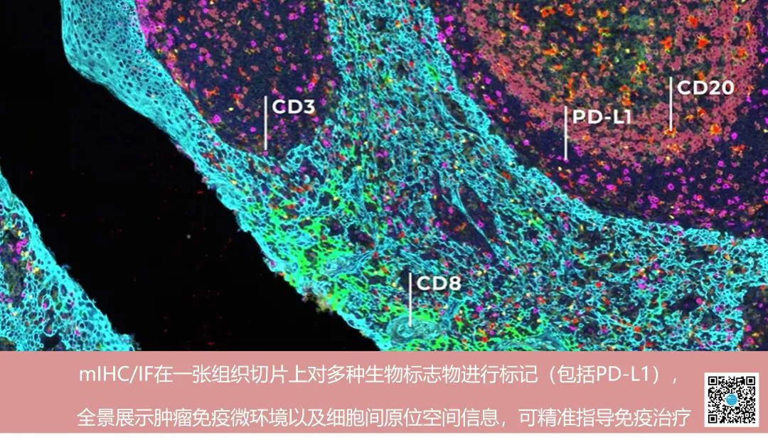 mIHC/IF是一种较为先进的伴随诊断技术,可在一张组织切片上对多个生物标志物进行标记(包括PD-L1),全景展示肿瘤免疫微环境以及细胞间原位空间信息,精准指导患者免疫治疗。目前,美国国家癌症研究所(NCI)已将mIHC/IF技术纳入肿瘤免疫疗法临床试验指南(CIMAC-CIDC),全球众多顶尖药企已积极采用此技术,以推动创新疗法和伴随诊断产品的研发进程。5