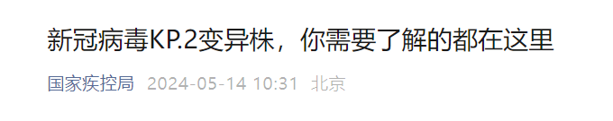 国家疾控局5月14日发布健康提示,介绍新冠病毒KP.2变异株相关情况。
