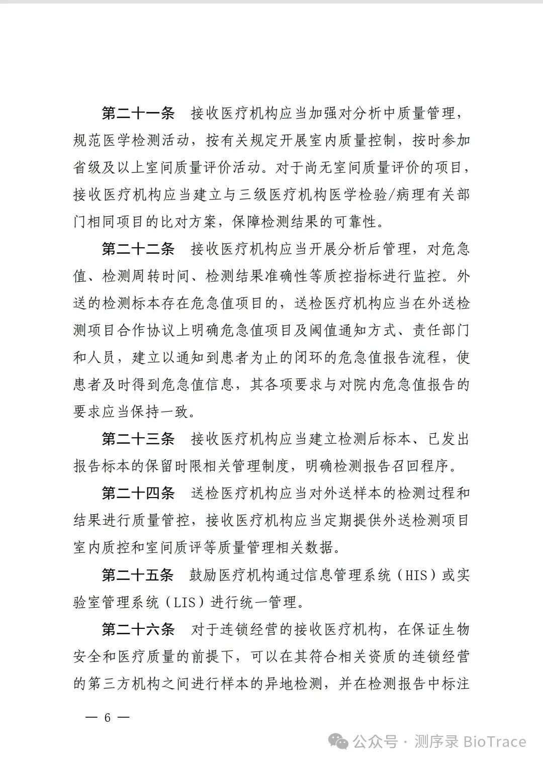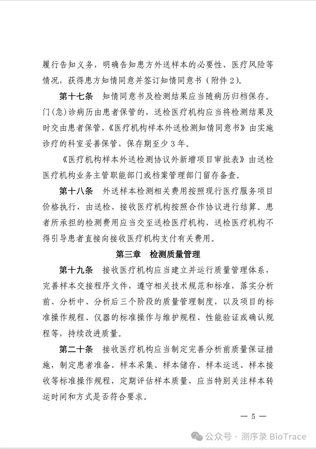 近日,山东省出台《山东省医疗机构样本外送检测管理规范》,对临床样本外送进行了更加详细的约束。 (1)鼓励医联体内部开展样本外送检测服务,城市医疗集团或县域医共体的牵头医院应当具备向成员单位提供医学检验、病理诊断等服务能力,为区域内提供同质化、标准化服务。 (2)送检医疗机构确定开展基因检测时,应当充分遵循询证医学证据,选择最新诊疗规范、指南和专家共识等中明确提及、高度认可、对患者诊断和后续治疗有明确意义的检测项目。对于无明确指征、花费较高的检测项目要严格把控,避免过多诊疗。 (3)送检医疗机构应当根据诊疗需求向接收医疗机构提出检测申请,接收医疗机构在完成检测后应当及时提供检测报告。接收医疗机构不得在送检医疗机构内直接面向患者开展服务。 (4)送检医疗机构临时需要增加协议范围外的外送检测项目时,由临床科室填写《医疗机构样本外送检测协议外新增项目审批表》,与检验/病理有关部门协商一致,报业务主管职能部门,经分管院领导审批同意后方可外送检测。 (5)送检医疗机构应当加强对本机构样本外送检测工作的事前、事中、事后监督检查,严防潜在廉政风险发生。当发现接收医疗机构有私自给予临床科室、医务人员回扣、提成等违法违规行为时,送检医疗机构应当按照协议有关约定终止合作。 附件:原文