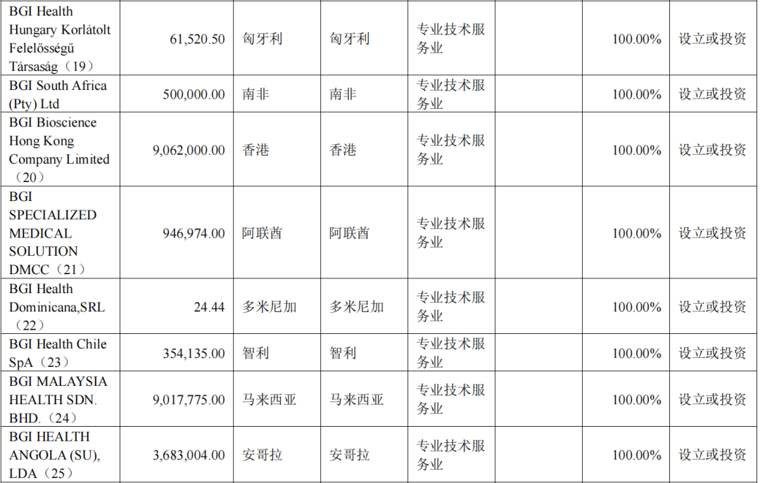 在海外业务战略合作方面,公司与印尼卫生部签订合作备忘录,双方将在基因组学、精准医学等方面展开合作。华大基因在泰国的合资公司兴泰基因(Bangkok Genomics Innovation Public Company Limited)与泰国国家能源公司(PTT PublicCompany Limited)下属医药公司 Innobic (Asia) Company Limited 等签署合作备忘录,相关方将建立长期战略伙伴关系,促进基因组学技术等在科研和临床领域的发展,共同推动建设国际生命科学创新中心;合作方将共同推动在泰国开展肠癌早期筛查,通过早发现、早干预,降低泰国晚期肠癌发生率,助力泰国加强肿瘤防治服务体系。与沙特公共卫生局(PHA)签署了合作备忘录(MoU),双方将在传染病筛查和检测的基础上进一步扩大合作,在生殖健康、癌症早期筛查、科研项目和人才培养等领域开展全方位合作,为沙特公共卫生事业注入新的动力。与哈萨克斯坦的纳扎尔巴耶夫大学签署了合作备忘录,以在纳扎尔巴耶夫大学医学院建立和发展个性化医疗和基因技术方面的合作。与智利知名院校马约尔大学(Universidad Mayor)签署合作协议,双方将共同建设智利首个基于高通量测序的临床肿瘤检测中心,为当地肿瘤防控方向提供完整的筛、诊、治闭环经验和方案。与阿根廷领先的精准医疗服务提供商 Biogenar 和诊断服务运营商 Biocodices 达成无创产前基因检测综合解决方案方面的合作。与哥伦比亚国家癌症研究所(INC 或 Instituto Nacional de Cancerologia)签署合作备忘录,旨在促进研究并进一步开发基于基因测序的宫颈癌和结直肠癌早期诊断的尖端解决方案。与塞尔维亚卫生部签署了关于公共卫生、精准检测合作的备忘录,促进基因组学检测在当地临床领域的应用,共同在当地开展肿瘤防控等公共卫生项目。与埃塞俄比亚卫生部旗下医学科学院 Armauer Hansen Research Institute(AHRI)正式签署了合作谅解备忘录,公司将帮助 AHRI 增强基因组学和精准医学检测能力,助力埃塞当地医疗卫生体系升级。在海外民生项目方面,公司探索满足不同国情、地区的需求,现已启动部分国家和地区的精准医学民生项目。报告期内,华大基因文莱合资公司 Borneo Genomics Innovation Sdn Bhd 与文莱卫生部签署国家宫颈癌筛查合作备忘录,双方基于HPV 筛查开展合作,助力当地医疗卫生体系升级。乌兹别克斯坦合资公司 Genscreen 承接当地政府民生筛查项目,在乌兹别克斯坦首都塔什干启动新生儿试点筛查项目,目标实现新生儿筛查全覆盖。