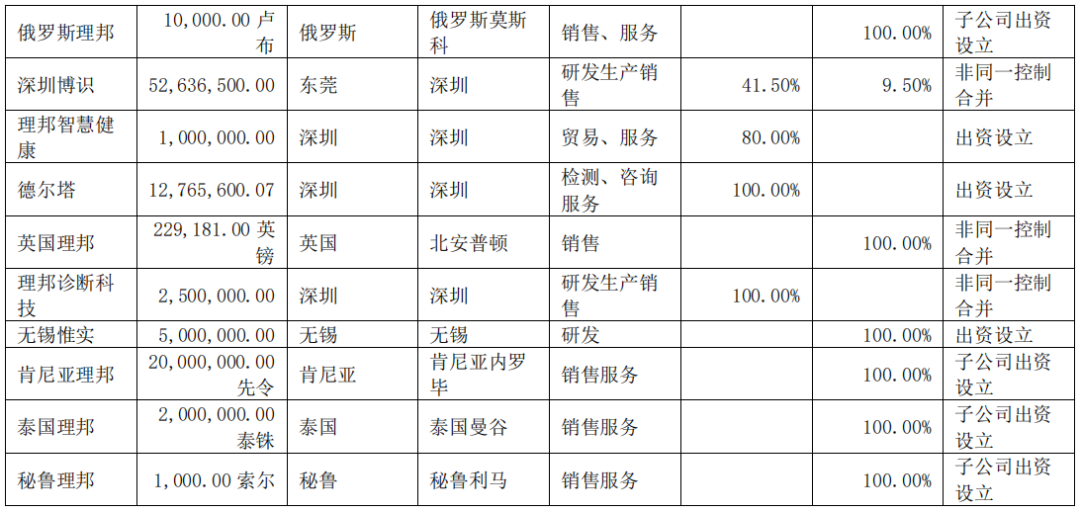 在国际主要销售区域设立子公司,引进本地的专业化人才,通过建立健全国内外的营销网络,提高产品在全球的市场占有率。公司已具备完善的营销网络系统,目前业务覆盖了国内 34 个省份及海外 170 多个国家和地区。秘鲁理邦,由理邦科技、鹏邦医疗于 2023 年 2 月 13 日在秘鲁利马共同出资设立,注册资本为 1000 秘鲁索尔。