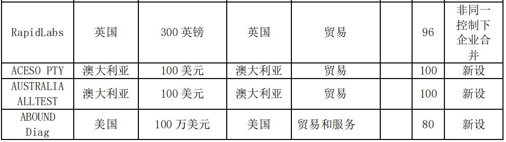 还包括 106 家第三方连锁实验室,如巴西 TOP 5 的连锁集团 AFIP、中东最大的连锁集团 ASTER、阿联酋最大的私营医疗保健公司 NMC Healthcare、欧洲 TOP 2 的连锁实验室 Cerba 集团、意大利最重要的私立医院集团之一 Humanitas、罗马尼亚 TOP 1 的高端私立医院集团 Medlife、土耳其最大的私营医疗保健公司之一 Medicana、埃及最大的连锁实验室 IDH Group、位于哈萨克斯坦、中亚最大的私立实验室连锁集团 Invivo、菲律宾 TOP 1 的连锁实验室 Hi-Precision Diagnostics、印度尼西亚头部连锁实验室 Parahita、南非大区级连锁实验室 National Health Laboratory Service、马来西亚最大的连锁试验集团 Innoquest 等各国头部连锁实验室集团。体外诊断业务海外高端连锁实验室成批量突破的势头依然在持续。