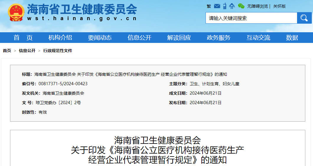 近日,海南省卫健委官网印发了《海南省公立医疗机构接待医药生产经营企业代表管理暂行规定》(以下简称《暂行规定》)。 这份文件针对医药代表备案、登记建档、拜访等行为进行了明确规定。随着这一纸通知的下发,医药代表在海南全省公立医院的出入与拜访,就要开始“变天”了! 《暂行规定》提出,全省公立医疗机构应建立本单位接待医药代表管理制度,按照“五定两有”原则,实行预约接待。对未提前预约或身份信息复核未通过的,一律不予接待。 其中“五定两有”是指:定接待时间、定接待地点、定接待人员、定学术交流对象、定学术交流内容,有接待流程、有接待记录。 同时还明确,医药代表在院内业务活动中不得有以下七大类禁止情形: (一)未经备案开展学术推广等活动; (二)未经医疗机构同意开展学术推广等活动; (三)参与统计医生个人开具的药品处方数量或使用的医疗器械数量; (四)对医疗机构内设部门和个人直接提供捐赠、资助、赞助; (五)误导医生使用药品或医疗器械,夸大或者误导疗效,隐匿药品已知的不良反应信息(医疗器械已知的不良事件信息)或者隐瞒医生反馈的不良反应(事件)信息; (六)在门(急)诊、住院部、检验科、设备科、药剂和信息管理部门等医疗诊疗重点区域活动; (七)其他干预或者影响临床合理用药的行为。 不止是海南,上半年福建、江西、上海等卫健委也接连出台文件,明确医药代表院内拜访的相关合规制度和要求。医药代表的职业生态正在发生转变!过去的“随意进出”已经一去不复返,取而代之的是日益升级的“严格管理”。 卫健委密集出手, 医药代表,开启严管! 今年2月,福建省率先发布《福建省公立医疗机构工作人员接待医药代表管理暂行规定》,并于2024年3月1日起执行,有效期2年。 再到此次海南,短短四个月间,年初的“三定两有”便已演化至“三定四有”、“五定两有”。可以明显感觉到,今年对于医药代表“入院活动”的监察力度还在不断加深。2024,将是医药代表被重点整治的一年! 除了卫健委密集发布的合规文件,各地市监局、纪委等监管部门针对医药代表备案落实、院内拜访的检查行动也已经火热铺开。 多地掀起检查风暴! 剑指医药代表这些行为 如5月6日,铜川市市监局公布医疗领域集中整治举报热线,整治期从2024年4月一直持续到10月底,举报对象为全市药品、医疗器械生产经营企业及其经销商、医药代表等。 举报内容包括:药品上市许可持有人未按规定实施医药代表备案,药品上市许可持有人未履行主体责任任其医药代表从事与禁止性情形有关的活动。 5月11日,南安市纪委发布消息称,驻市卫健局纪检监察组组织对市妇幼保健院落实医药代表接待管理制度情况进行监督检查,现场核实“三定三有”(定接待时间、定接待地点、定接待人员、有预约、有接待流程、有接待记录)执行情况。 还有3月中旬,湖北天门市市监局联合市卫健委组织药品安全监管人员联合市卫健委工作人员成立专班,对2家市直医院和3家乡镇卫生院医药代表管理情况实地抽查,重点对医药代表管理制度、备案建档、预约接待、培训教育等多方面开展检查。 无疑,在管理趋严和检查风暴双重作用下,随之而来的将是在入院、院内活动限制全面升级。随着一举一动都被纳入严格监控,医药代表们所面临的压力也空前加大,务必时刻绷紧合规这根弦。 |